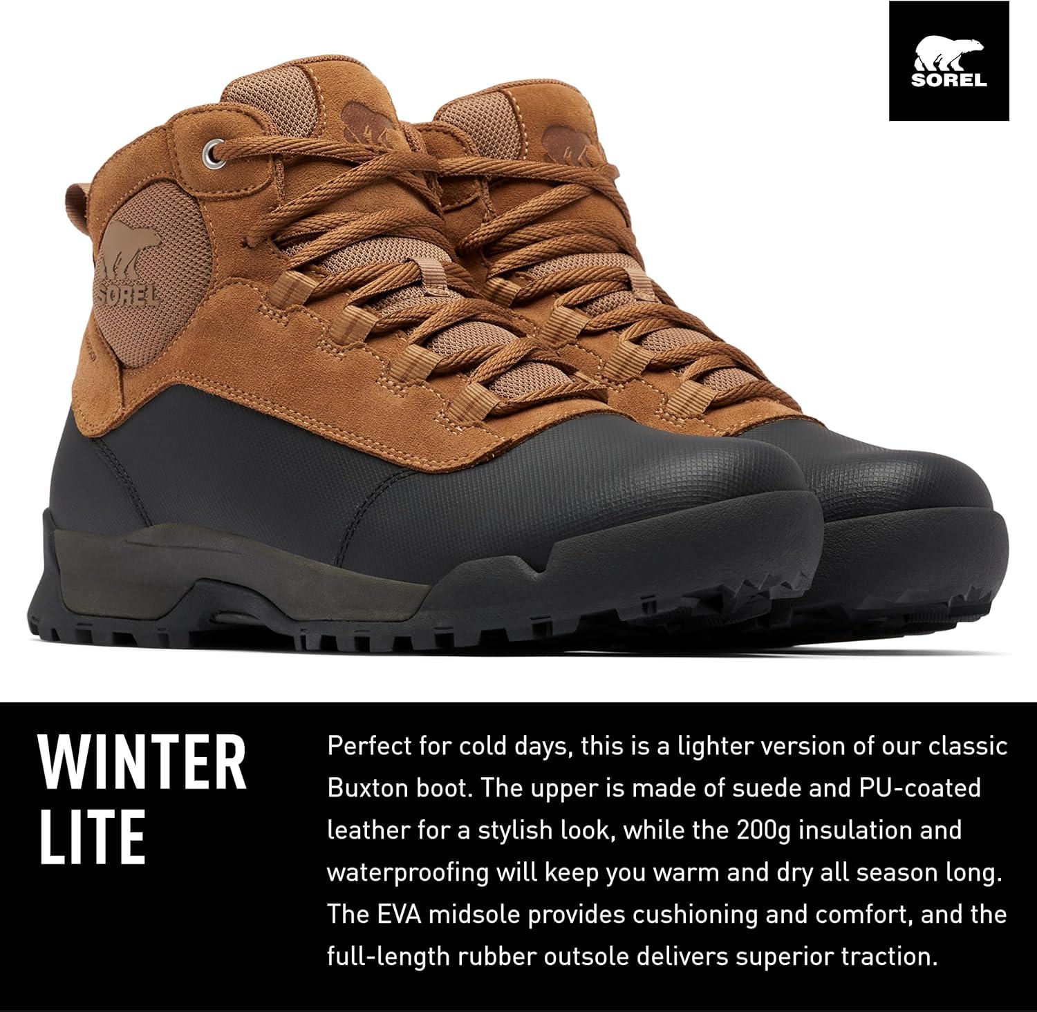 SOREL Men’s Buxton Lite Lace Plus Waterproof Boot(Elk Black)