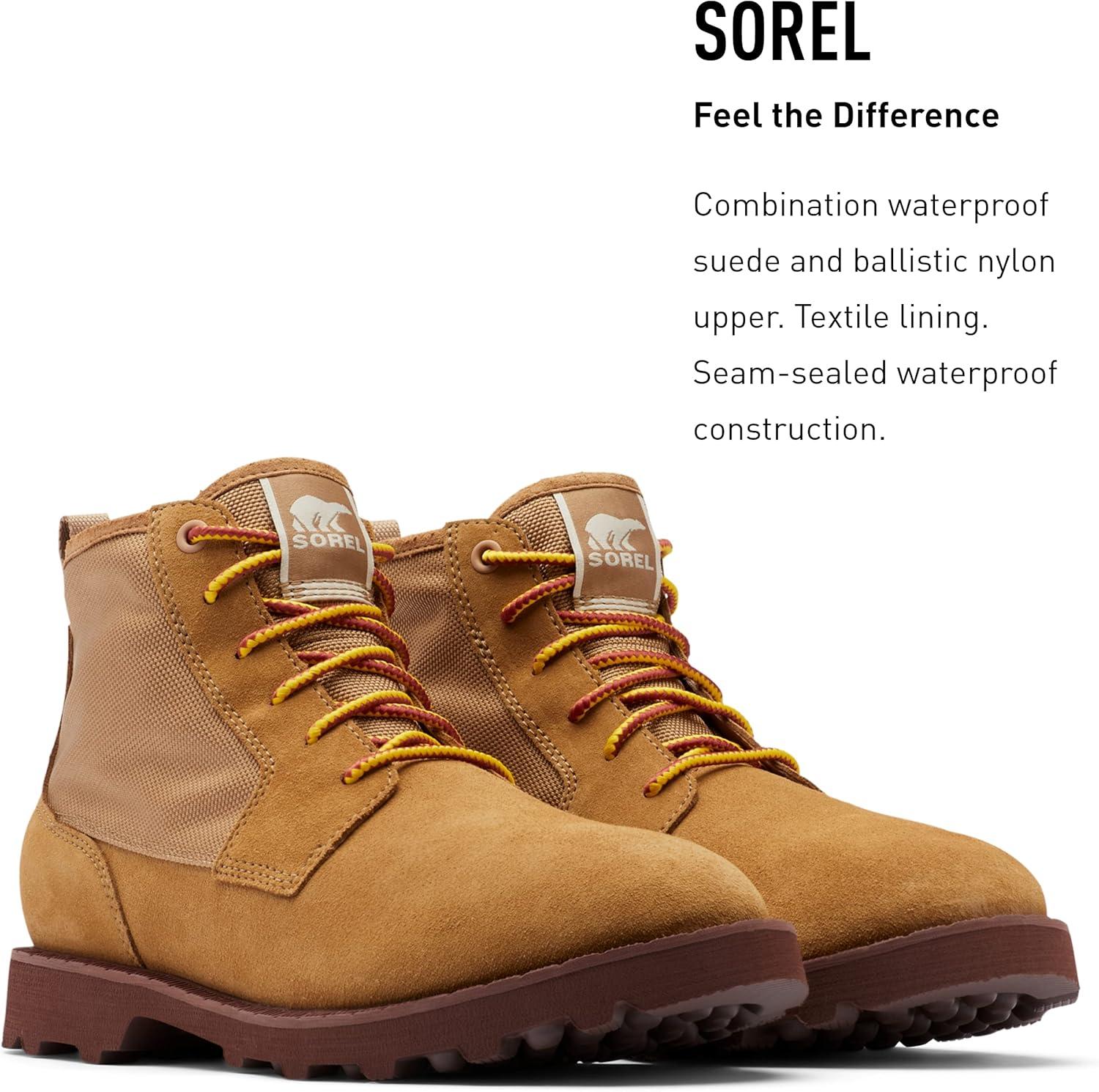 Sorel Men’s Caribou Mod Chukka WP Boot — Waterproof Suede & Nylon Rain Boots(Buff Madder Brown)