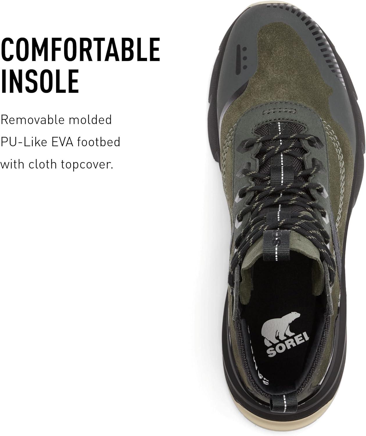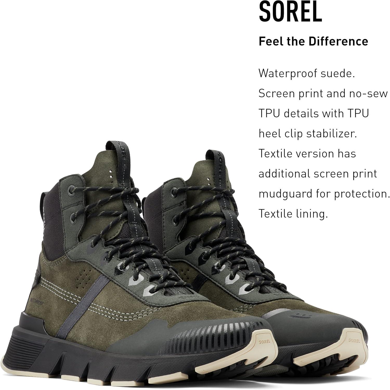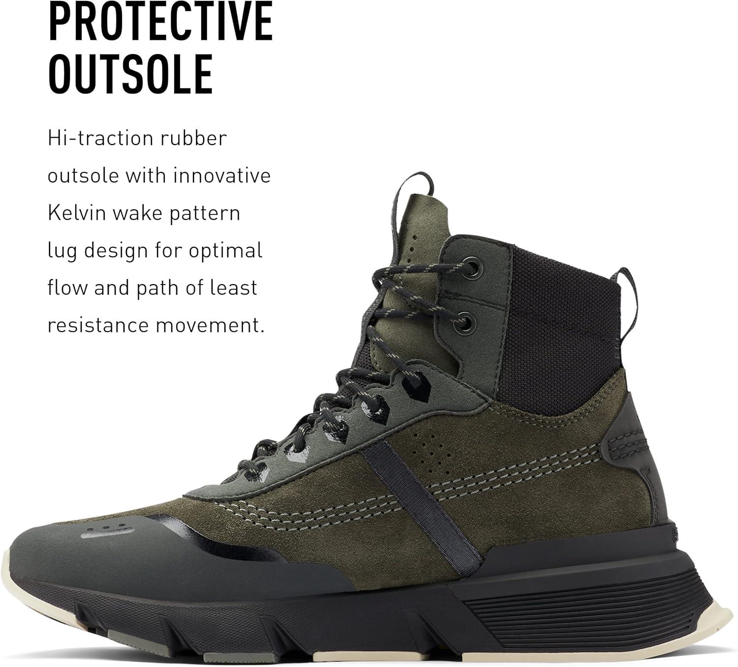 Sorel Men’s Kinetic Rush MID WP Sneaker — Waterproof Suede Sneakers(Alpine Tundra Dark Moss)