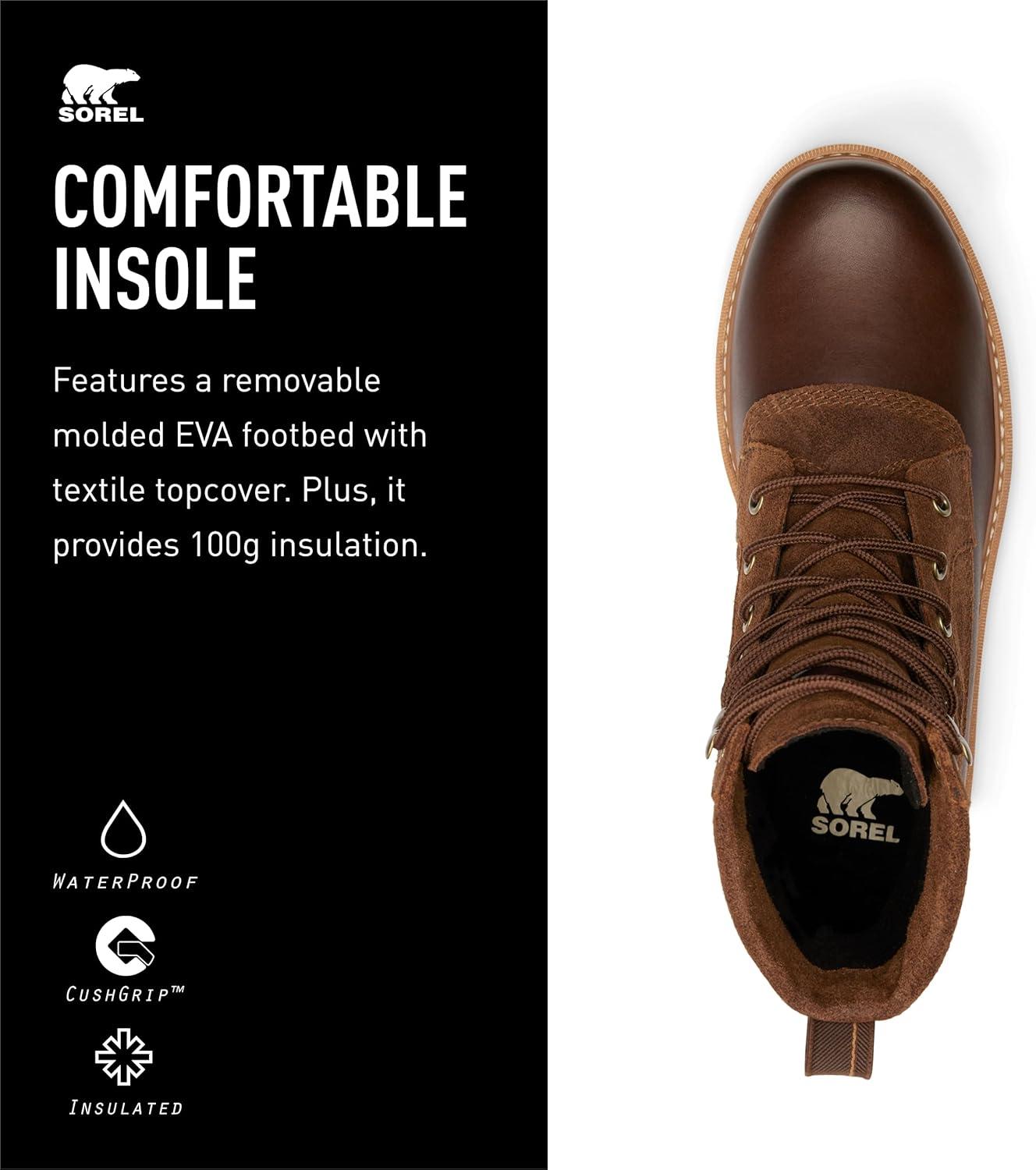 SOREL Men’s Slabtown 62 Caribou Waterproof Boot – Black, Black – 10(Velvet Tan/Tobacco)