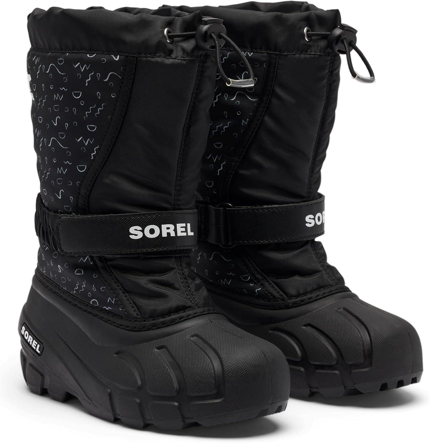 Sorel unisex-child Flurry Boot Print(Black/Sea Salt)