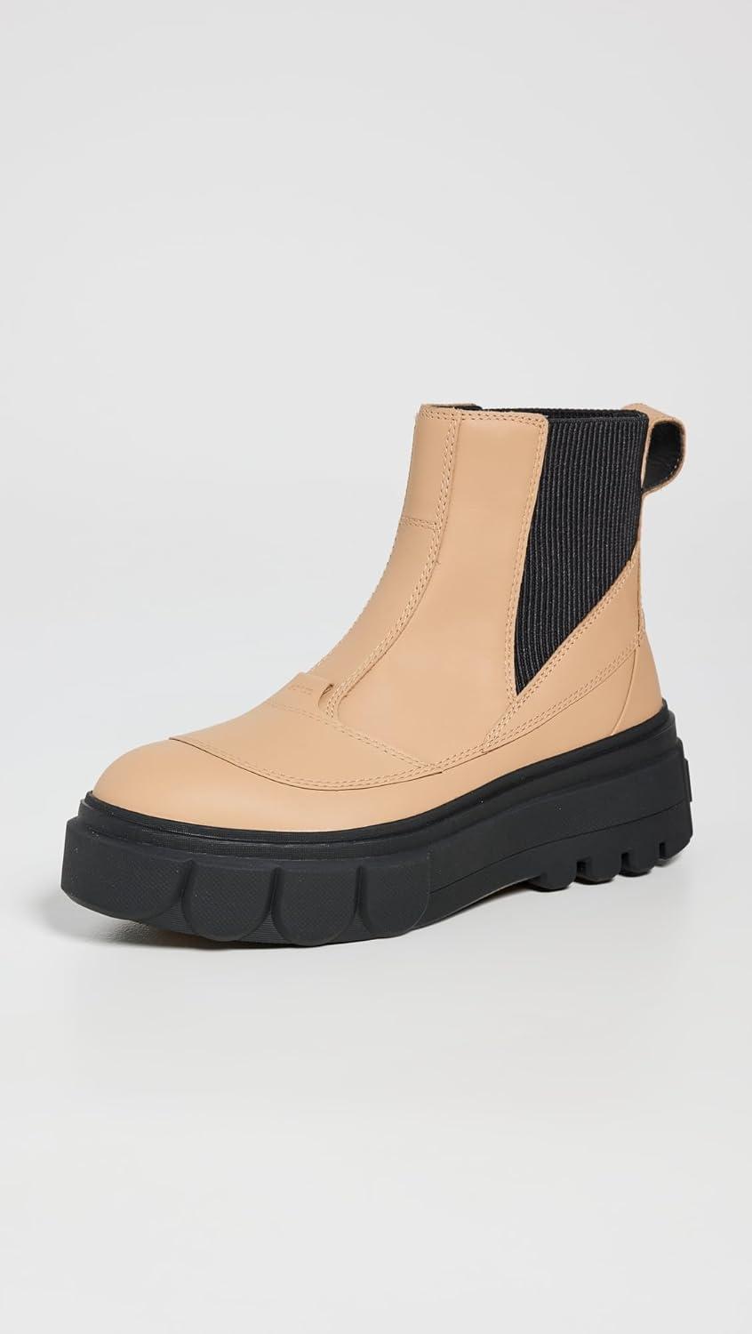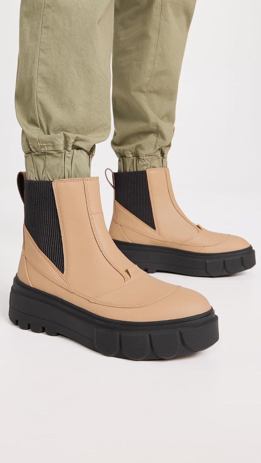 TWIST ON TRADITION For an updated take on tradition, these Chelsea stompers bring you waterproof full-grain uppers, faux shearling details and stretchy, easy-on Gore panels. The EVA midsole provides cushioned comfort, while the molded rubber and GCEVA outsole offers durability and traction for all-day, any-weather wear.