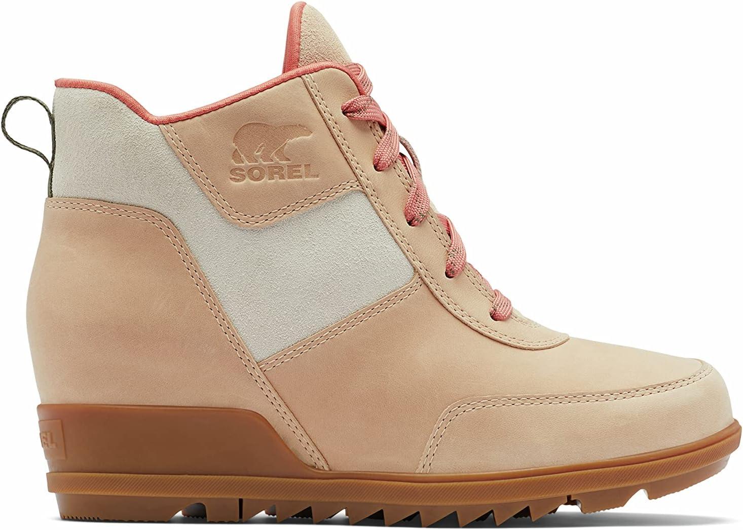 Sorel Women’s Evie Sport Lace Bootie — Waterproof Suede & Leather — Wedge Ankle Sneaker — Booties(Nova Sand Gum 2)