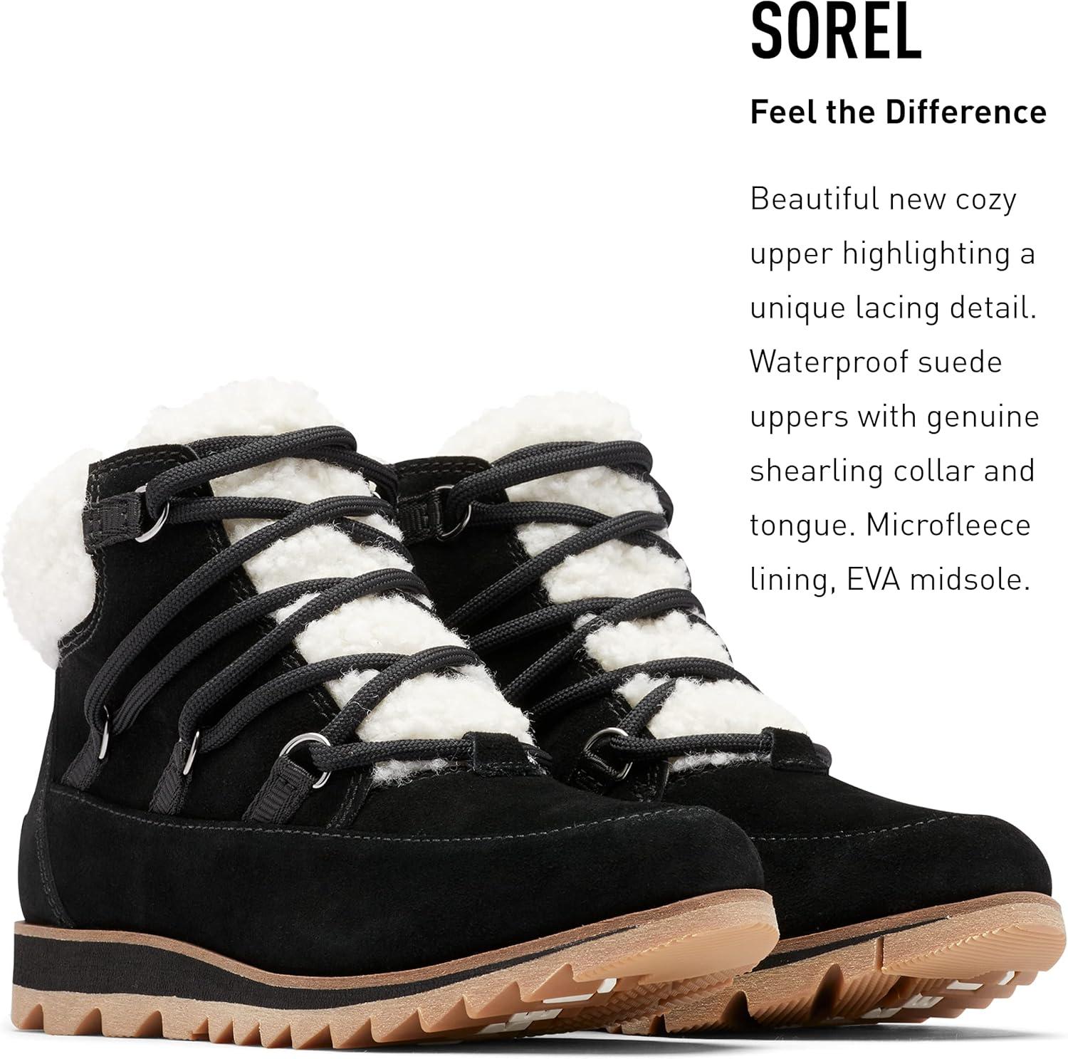 Sorel Women’s Harlow Lace Cozy Boot — Waterproof Leather Ankle Booties(Black Gum 10)