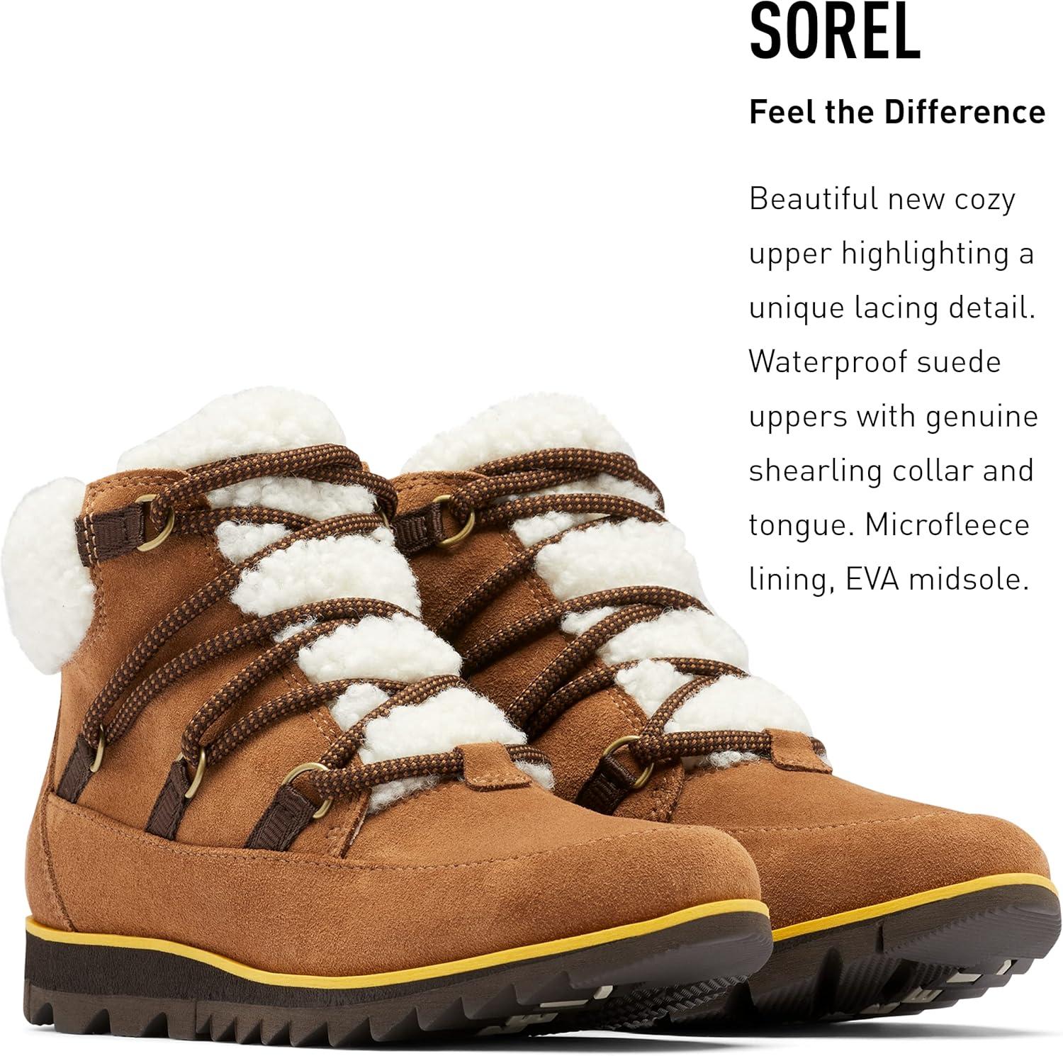 Sorel Women’s Harlow Lace Cozy Boot — Waterproof Leather Ankle Booties(Velvet Tan Blackened Brown)