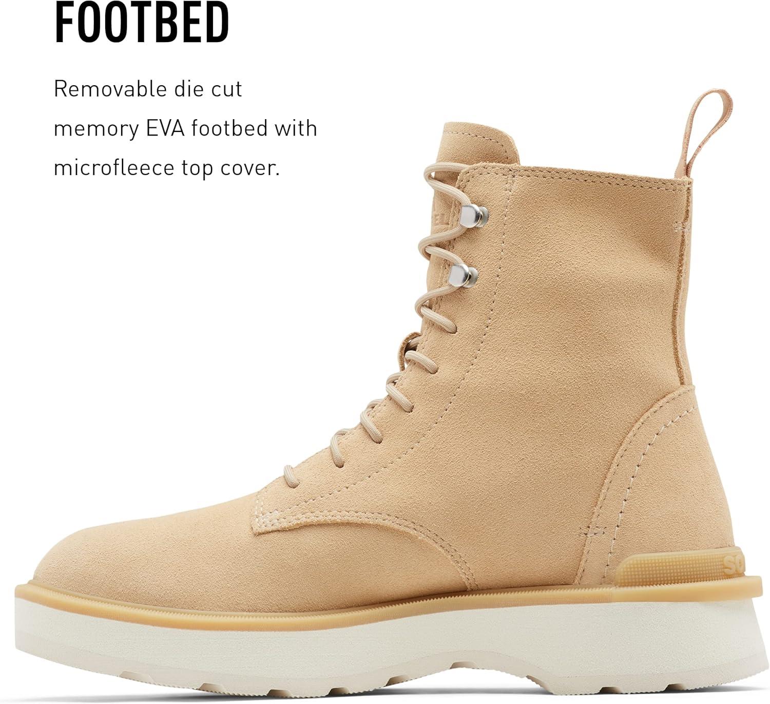 Elevate your style and take on any adventure with the SOREL Women's Hi-Line Lace Boot. These Boots are the perfect addition to your wardrobe, providing a minimal and modern look for all seasons. Crafted from waterproof materials, the Boots feature a simple and classic design with a lightweight but bold traction sole that will last for seasons to come. These Hi-Line Lace Boots are available in full-grain leather for durability and longevity. These Boots for women are the perfect everyday Boots that you can pair with any outfit, and the cozy, memory foam-like EVA insole provides excellent footing. Experience warm comfort with these Boots that are designed to keep your feet dry and comfortable.