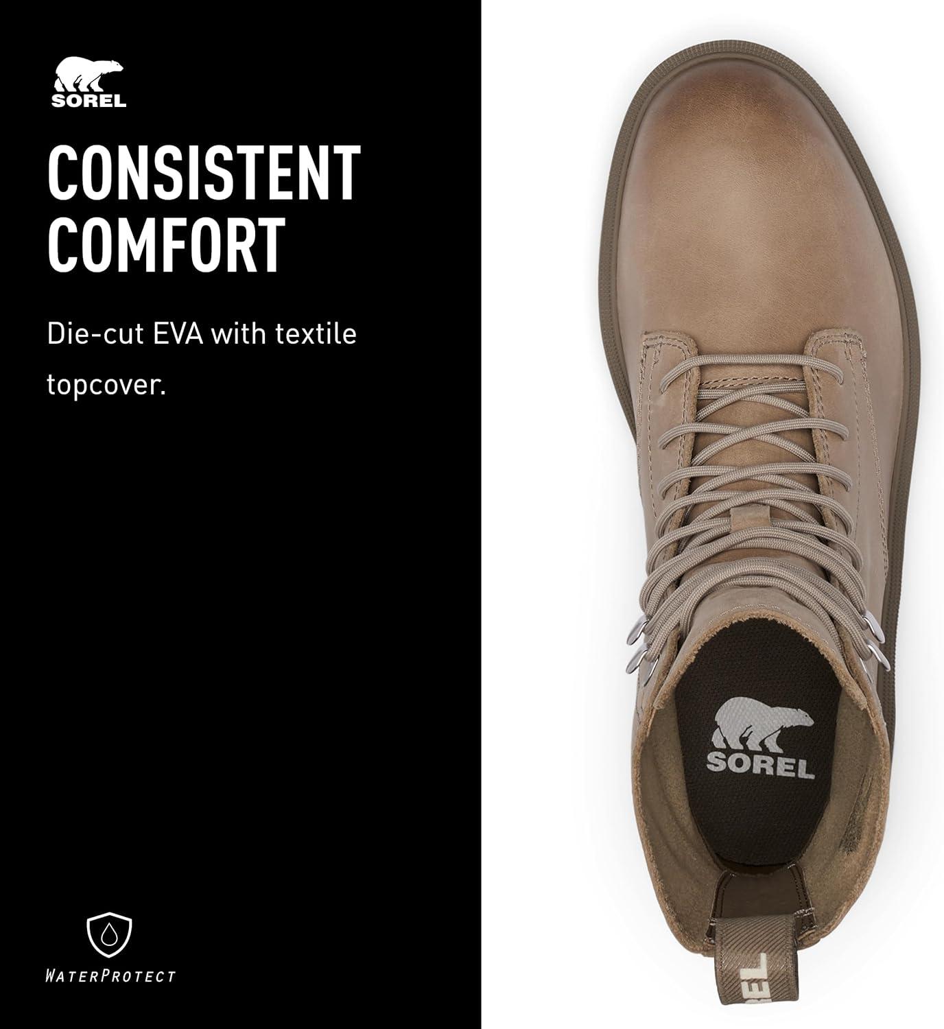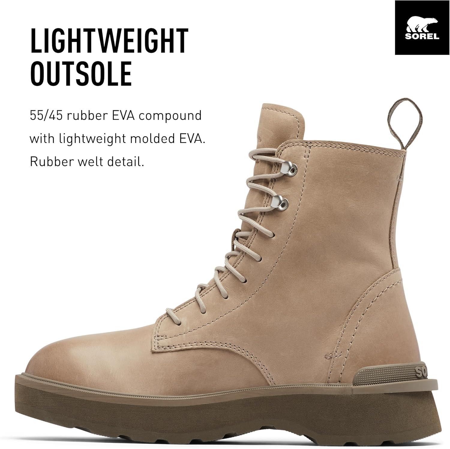 Elevate your style and take on any adventure with the SOREL Women's Hi-Line Lace Boot. These Boots are the perfect addition to your wardrobe, providing a minimal and modern look for all seasons. Crafted from waterproof materials, the Boots feature a simple and classic design with a lightweight but bold traction sole that will last for seasons to come. These Hi-Line Lace Boots are available in full-grain leather for durability and longevity. These Boots for women are the perfect everyday Boots that you can pair with any outfit, and the cozy, memory foam-like EVA insole provides excellent footing. Experience warm comfort with these Boots that are designed to keep your feet dry and comfortable.