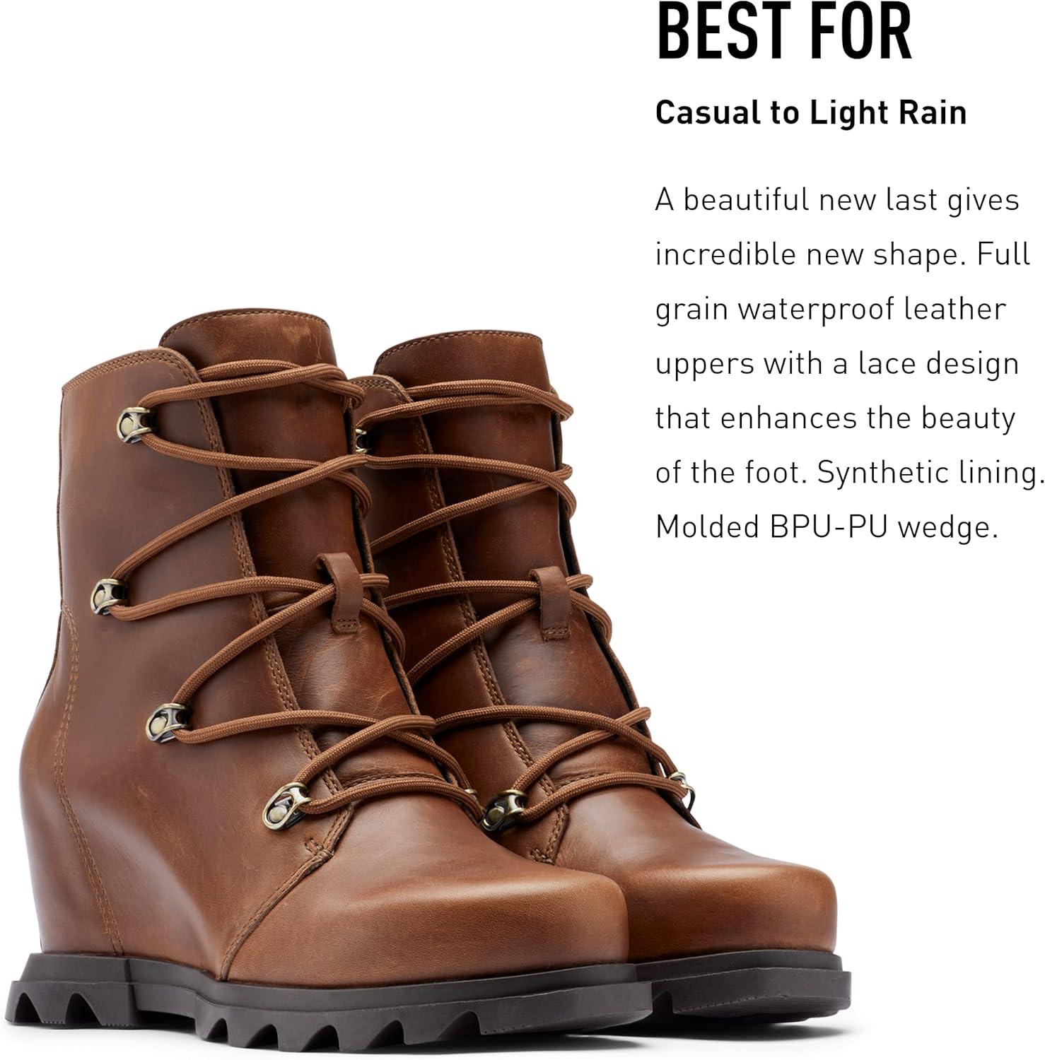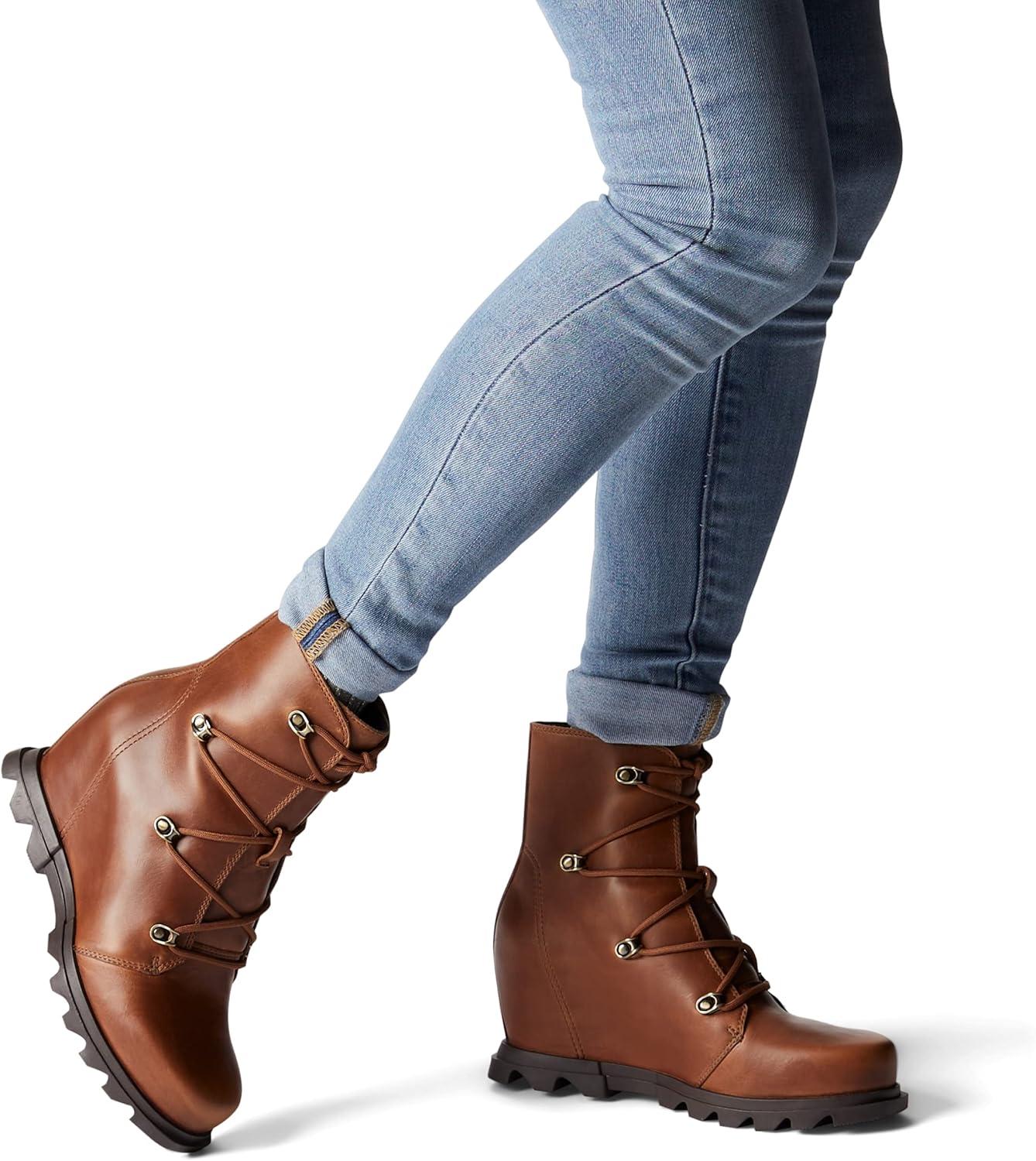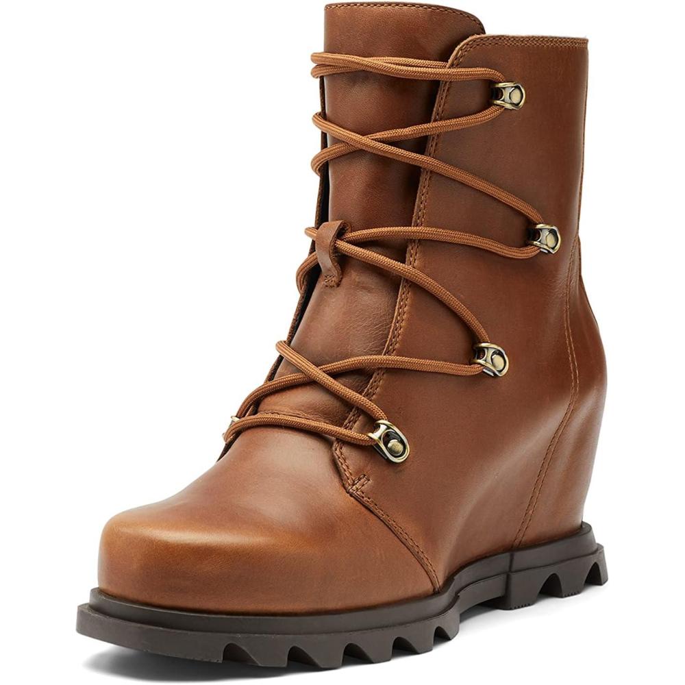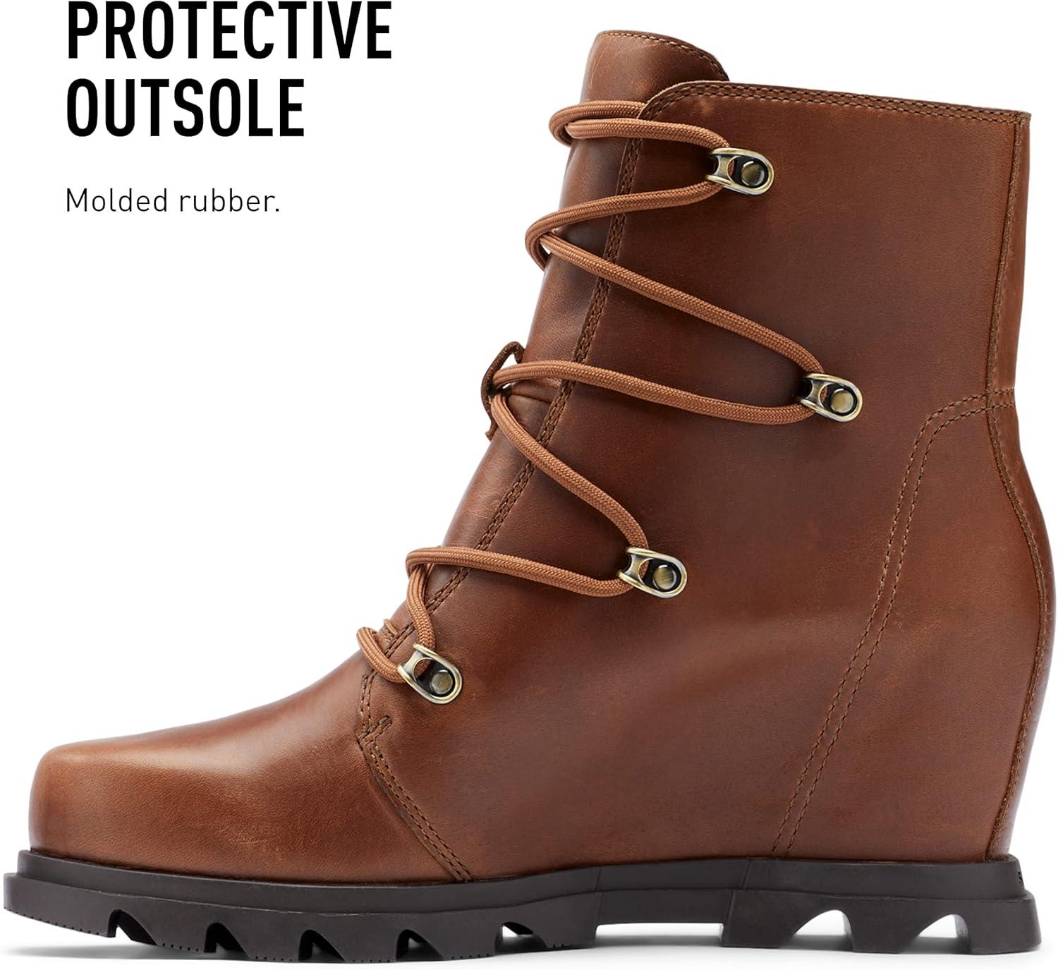 Sorel Women’s Joan of Arctic Wedge III Lace Boot — Waterproof Suede Wedge Boots(Hazelnut Leather Blackened Brown)