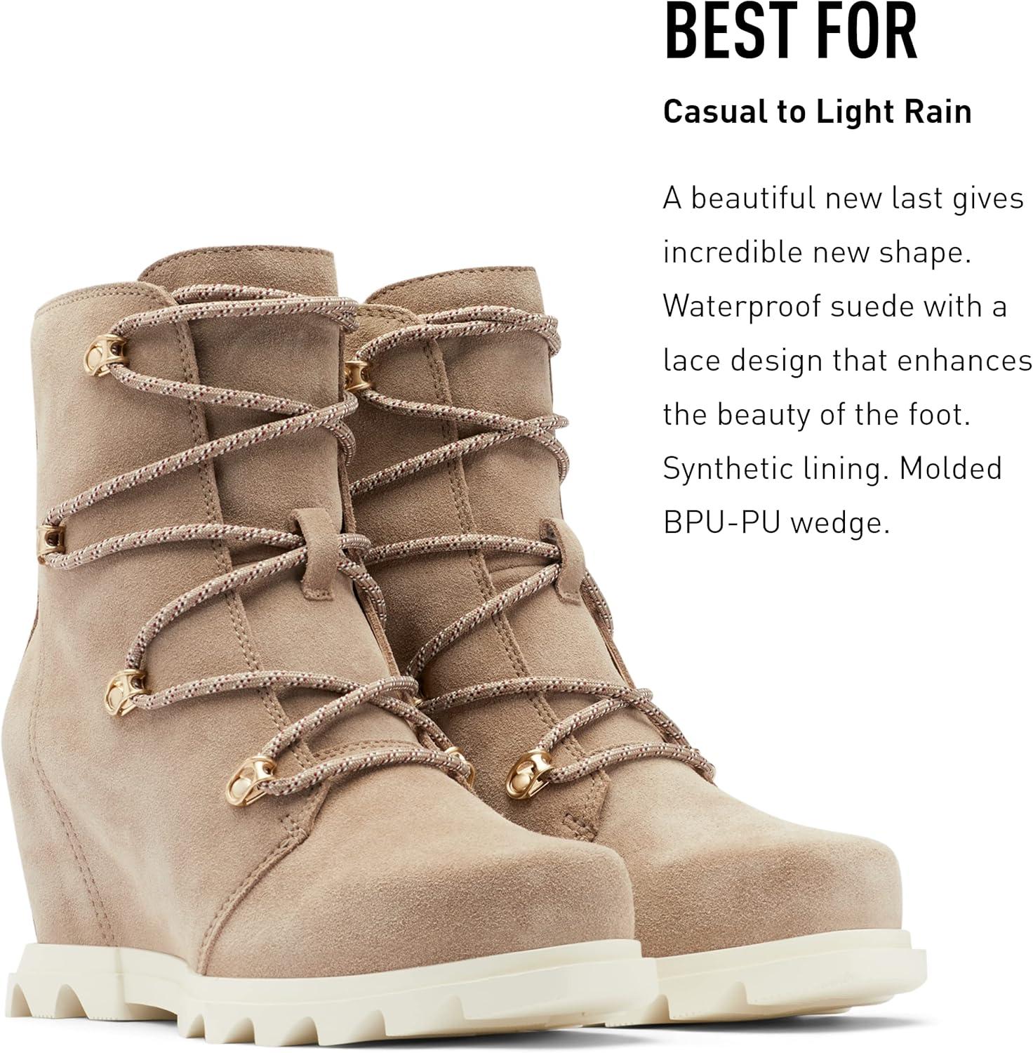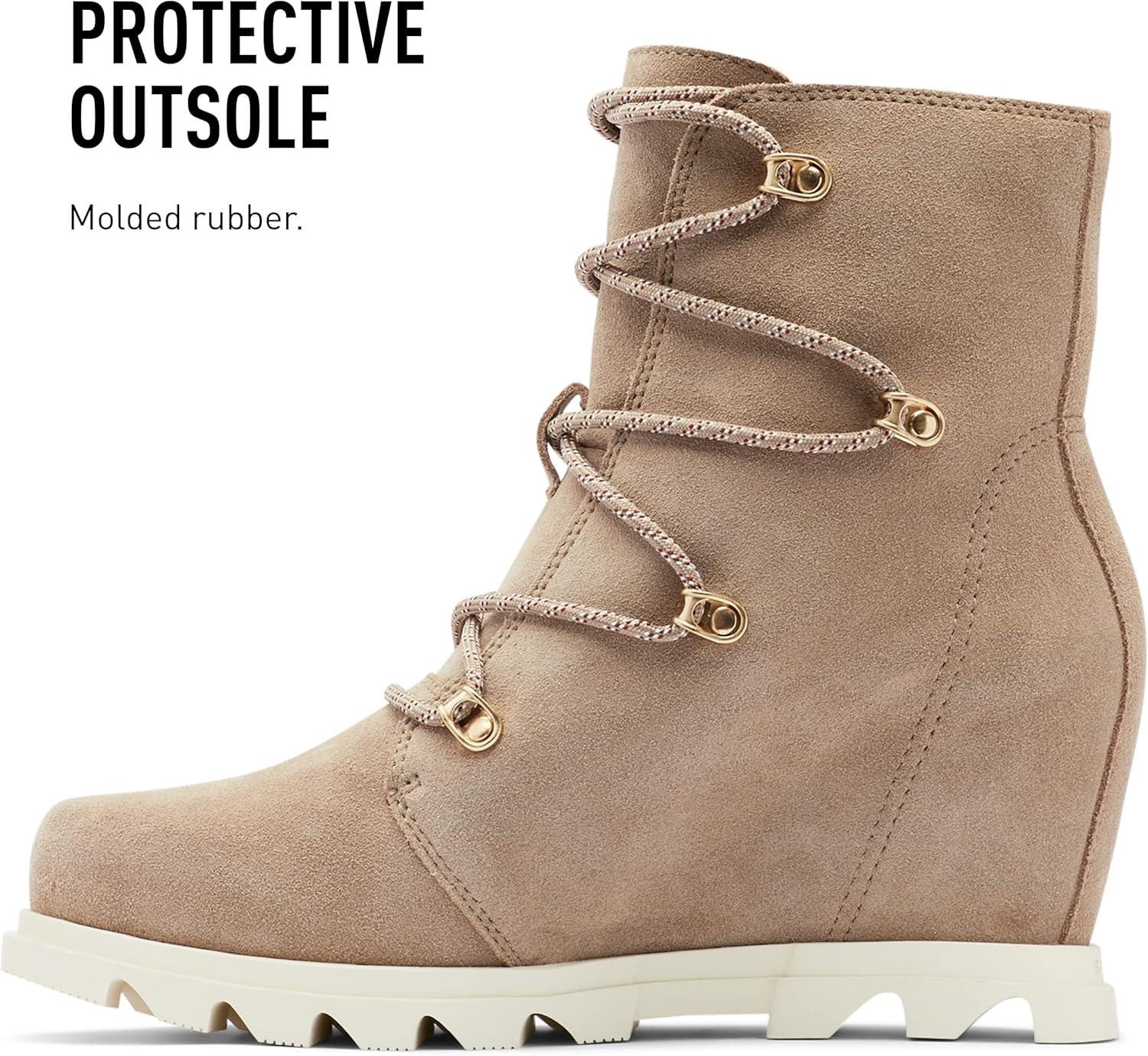 Sorel Women’s Joan of Arctic Wedge III Lace Boot — Waterproof Suede Wedge Boots(Omega Taupe Chalk)