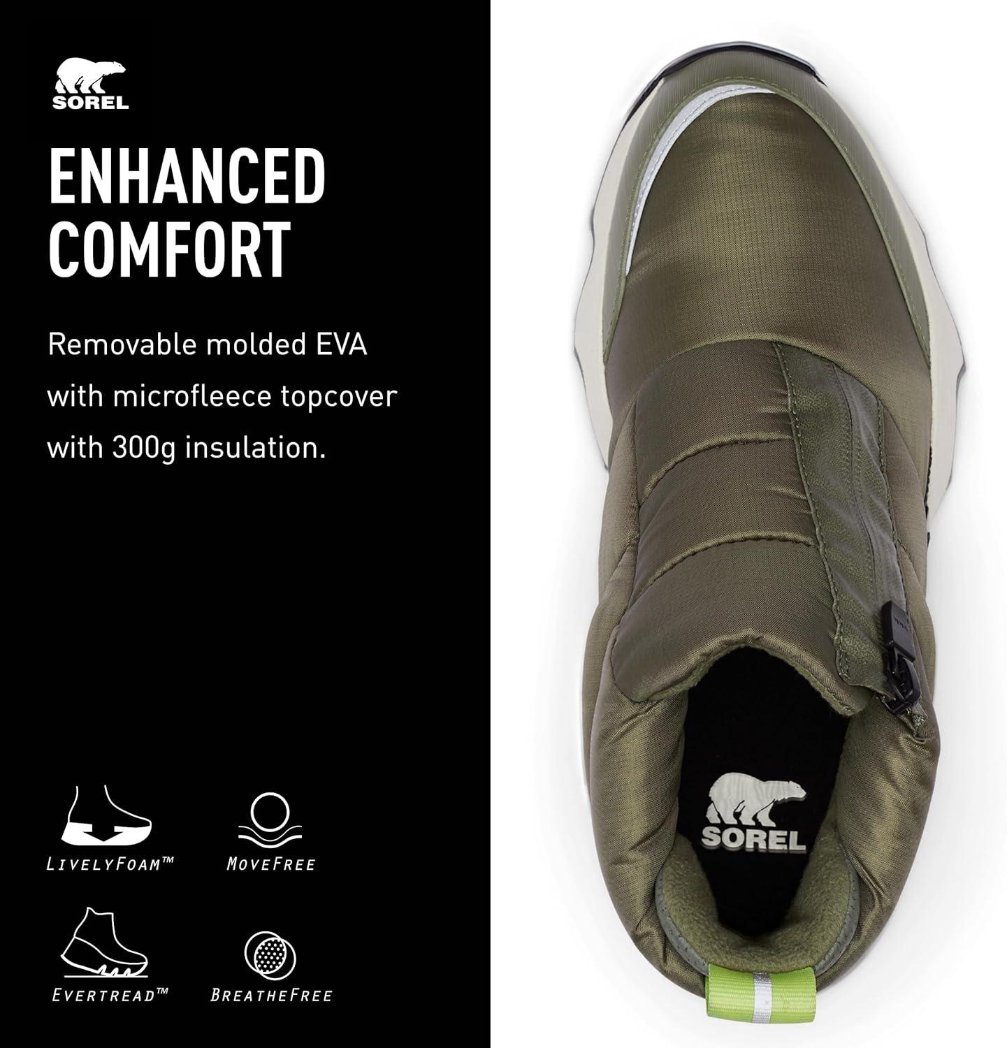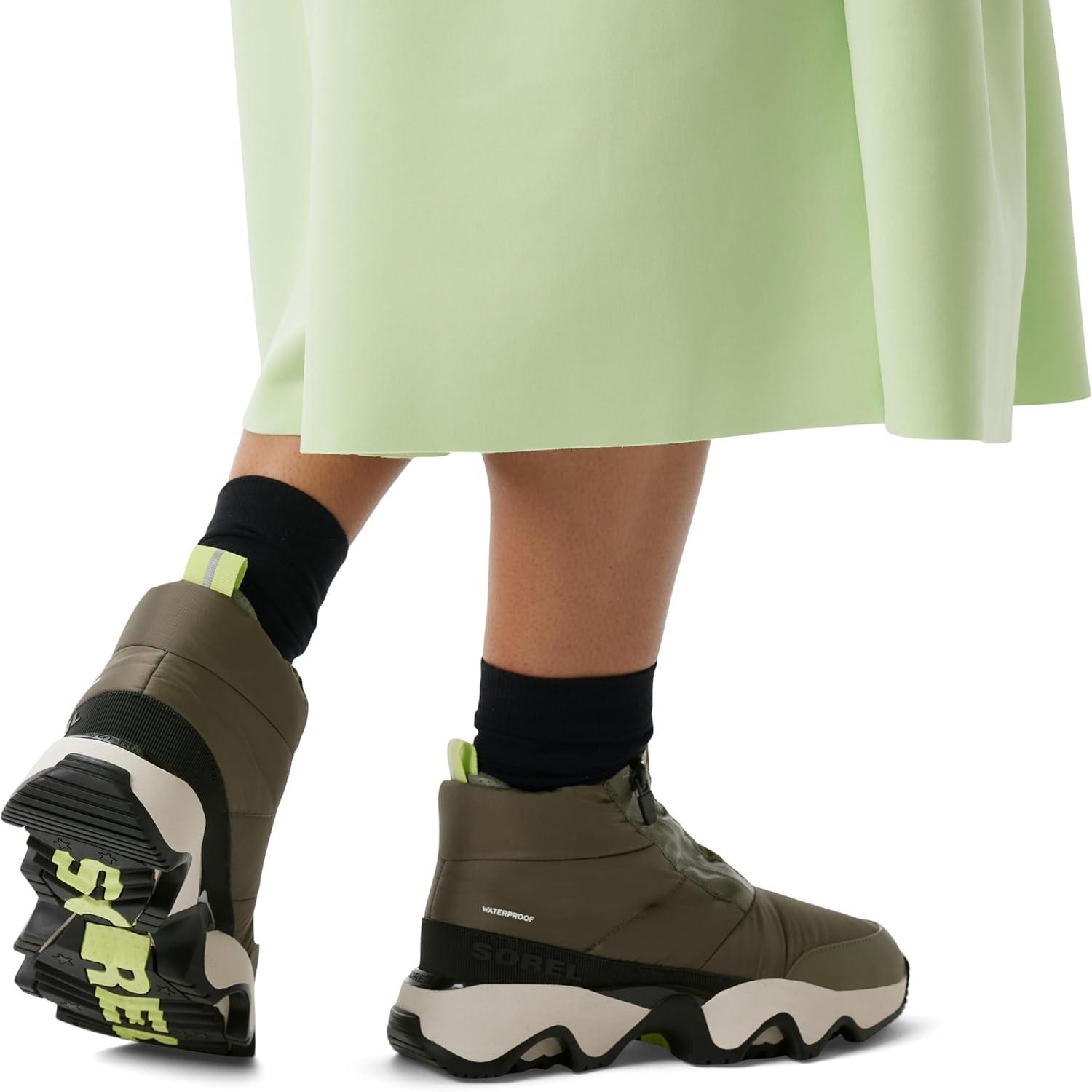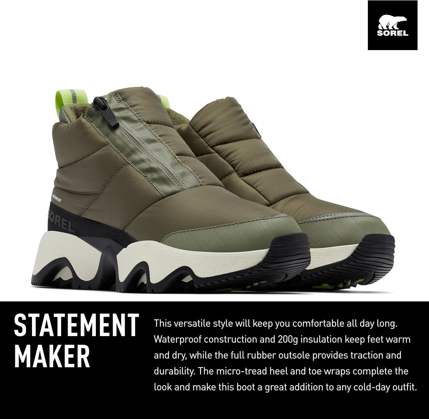 SOREL Women’s Kinetic Impact Puffy Zip Waterproof Boot(Stone Green Black)