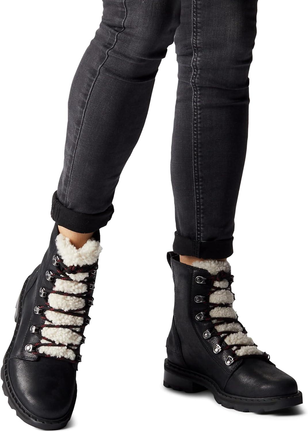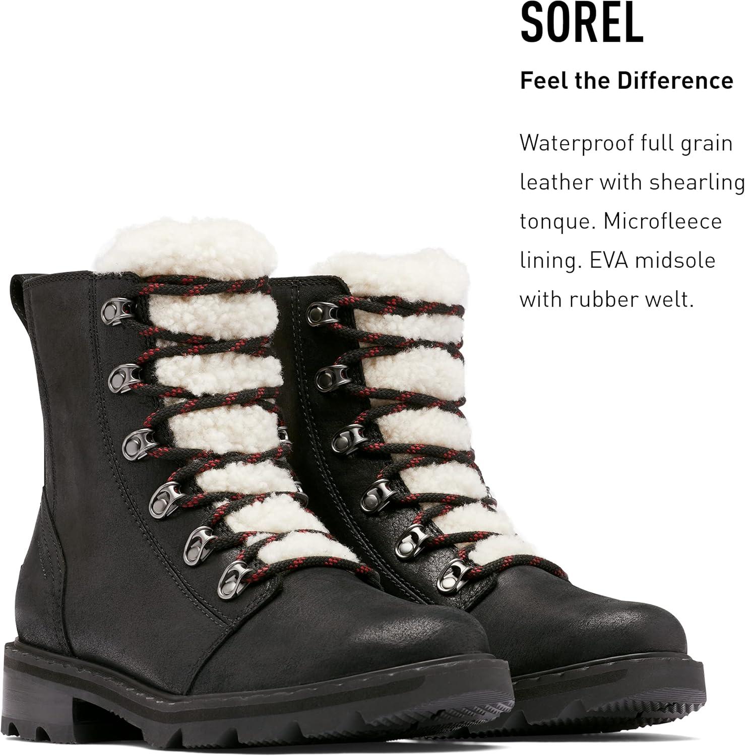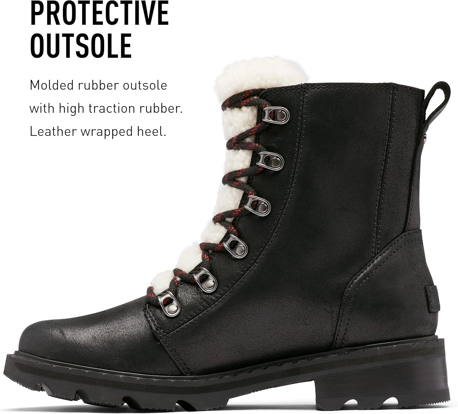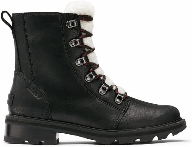 Sorel Women’s Lennox Lace Cozy Rain Boot — Waterproof Suede Boots(Black Nocturnal Red)