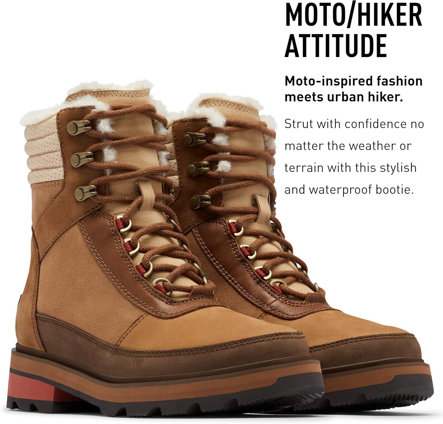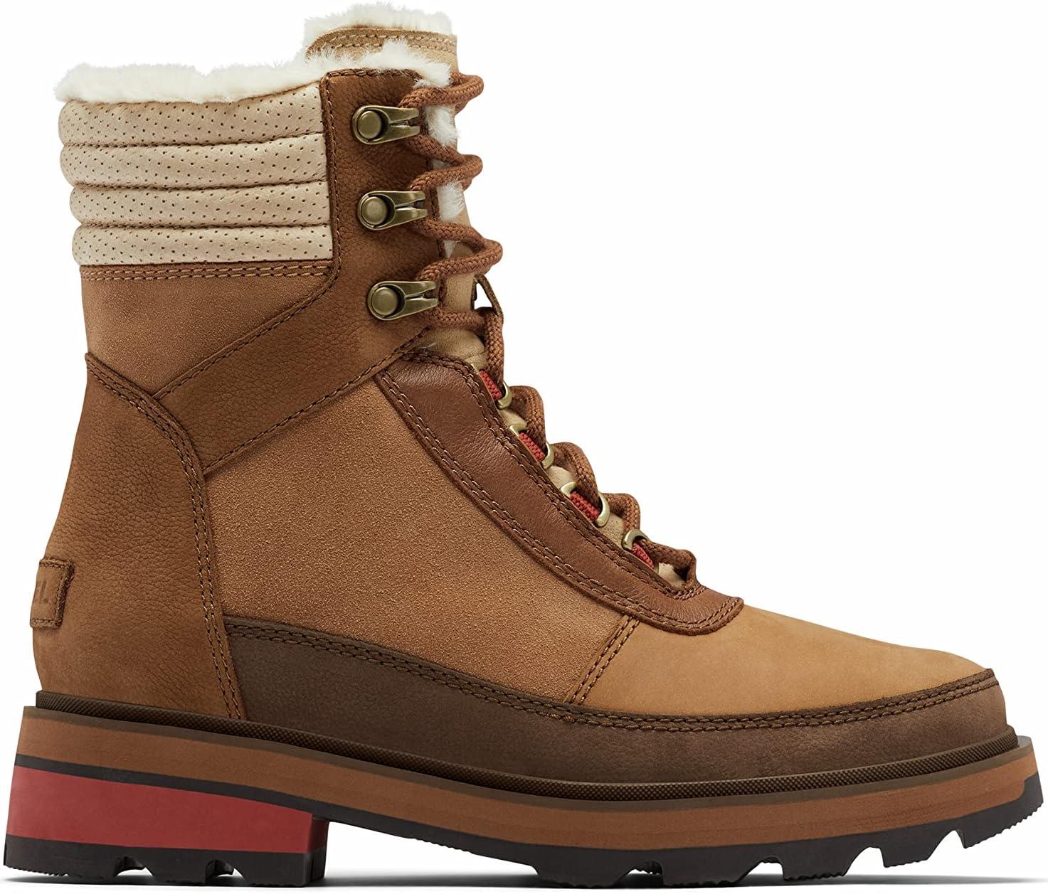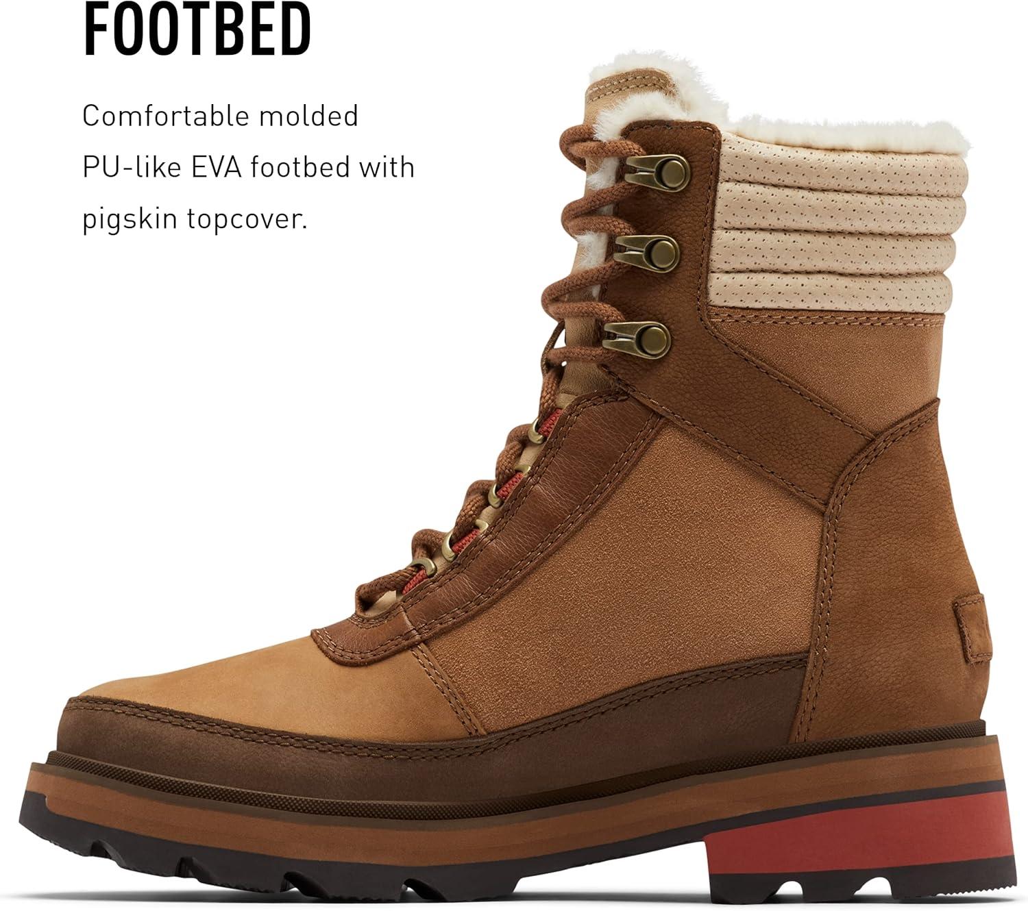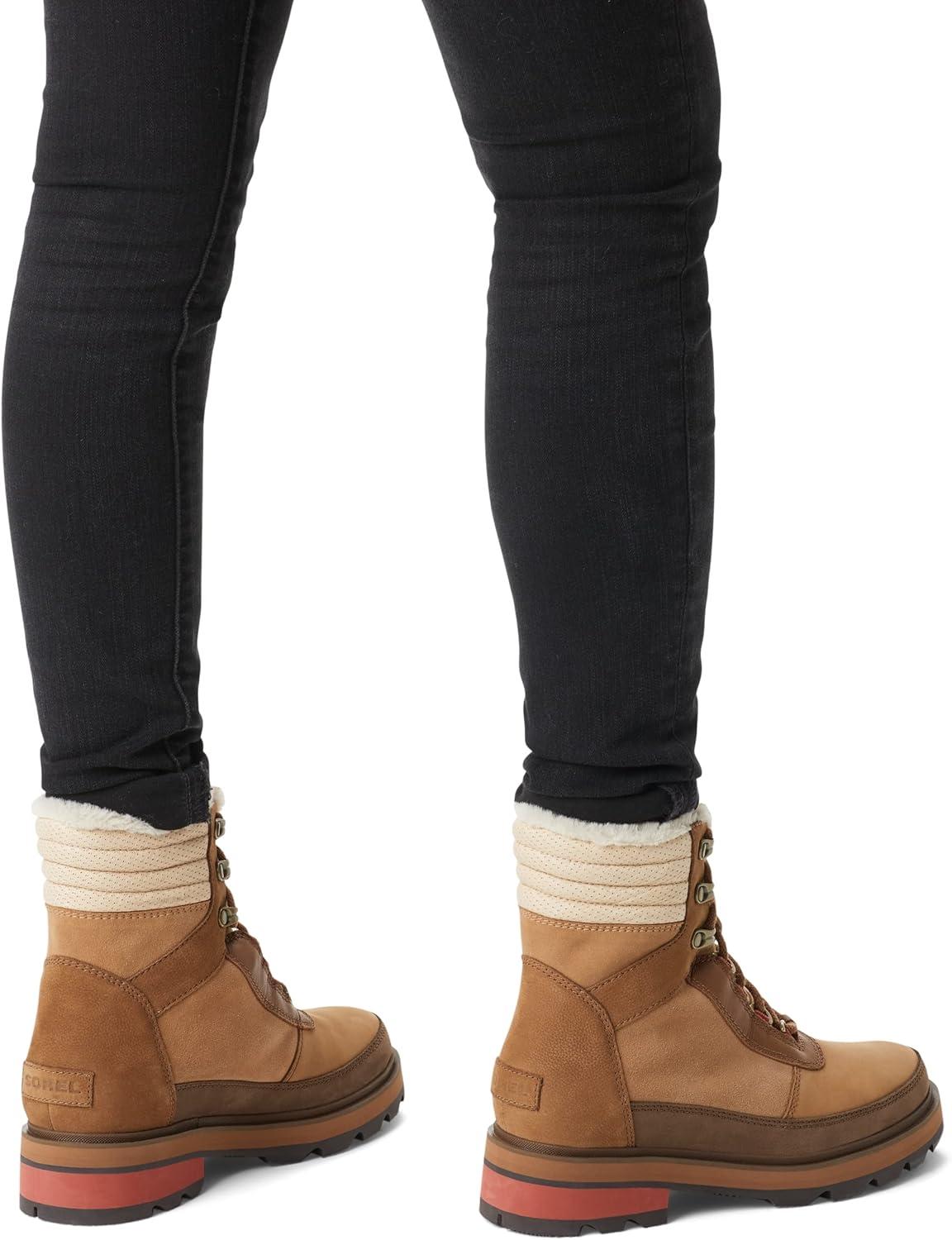 Sorel Women’s Lennox Lace Cozy Rain Boot — Waterproof Suede Boots(Velvet Tan Warp Red)