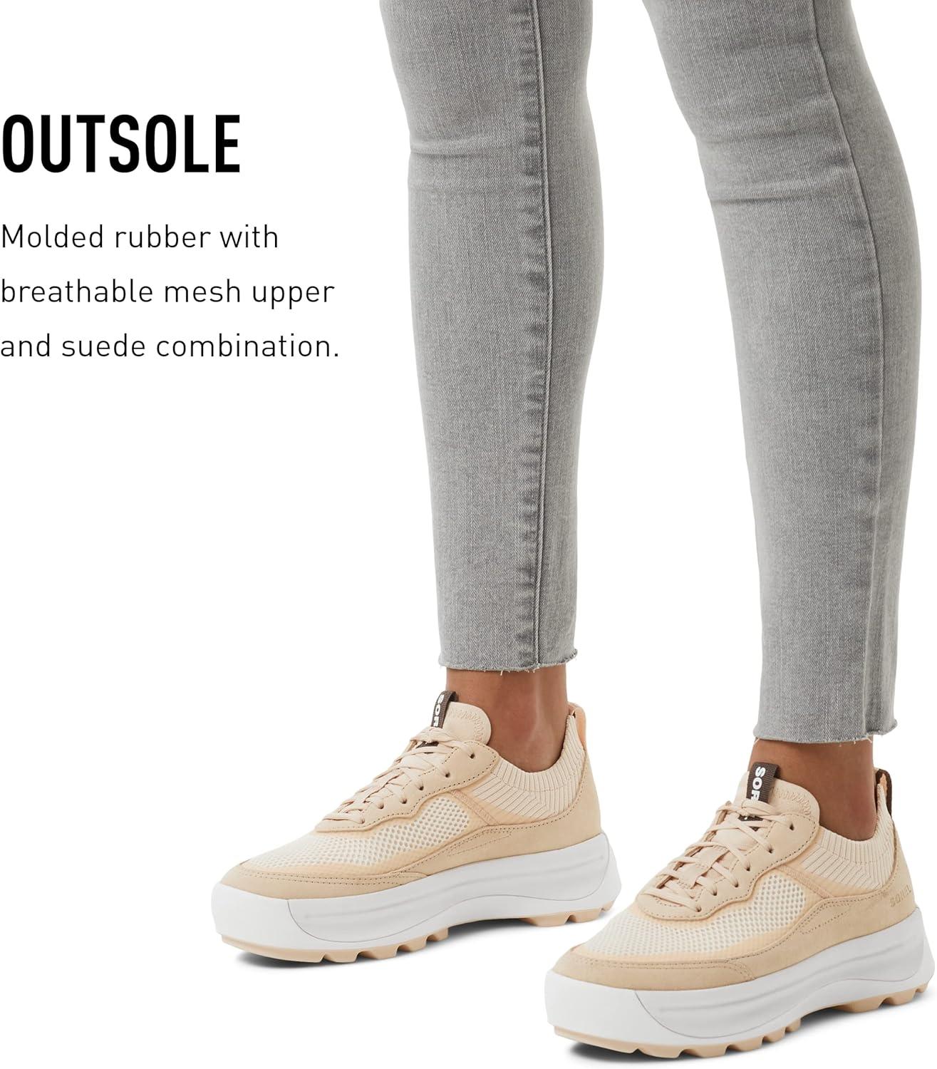 Stand out from the crowd with these ONA 503 Knit Low Sneakers that are crafted to take your style game to the next level. SOREL ONA 503 Knit Low Sneakers are built to withstand the wear and tear of everyday life and will take you from day to night in no time at all. These sneakers will make you ready for whatever the day brings or wherever the destination is. SOREL iconic design of women's sneakers adds a stylish look to your everyday outfits and boosts up your workout routine. These sneakers are best for those seeking performance and comfort. These eye-catching sneakers combine punchy colors, eco-friendly materials, and a midsole featuring up to 10% Bloom. The 10% Bloom is a material made with algae biomass harvested from freshwater sources. It contains molded rubber with ground contact EVA, a custom knit collar design combined with a breathable mesh upper and suede combination. These women's sneakers help you ascend to new heights with their comfortable, fancy design, and the material is also durable, giving you all-day wearability. Their breathable mesh in a bootie construction with gore detail gives a secure fit while the breathable holes keep your feet cool and dry. These women's sneakers are perfect for exercises and sports such as running, jogging, cycling, football, and gym. These sneakers are a perfect combination of style and comfort.