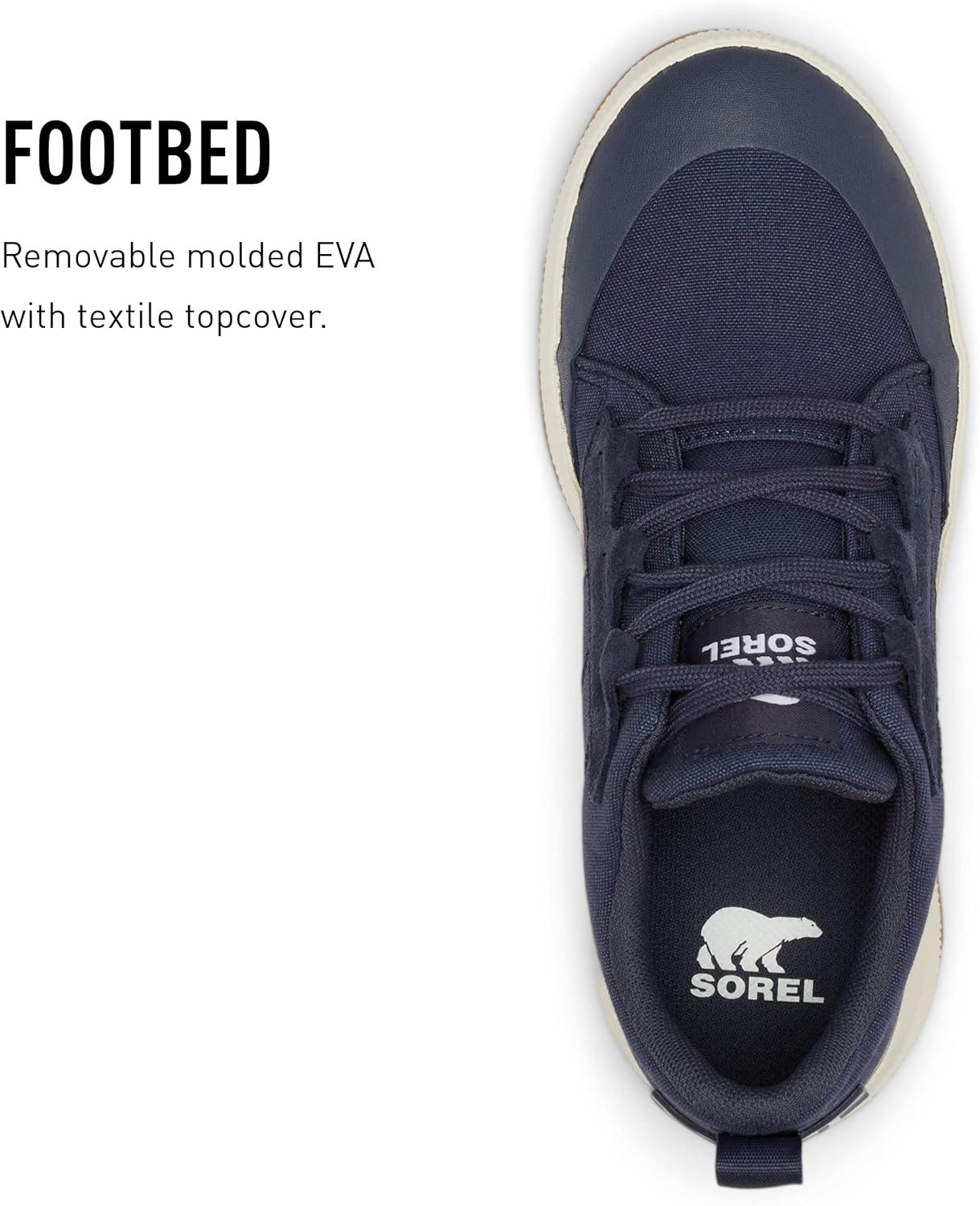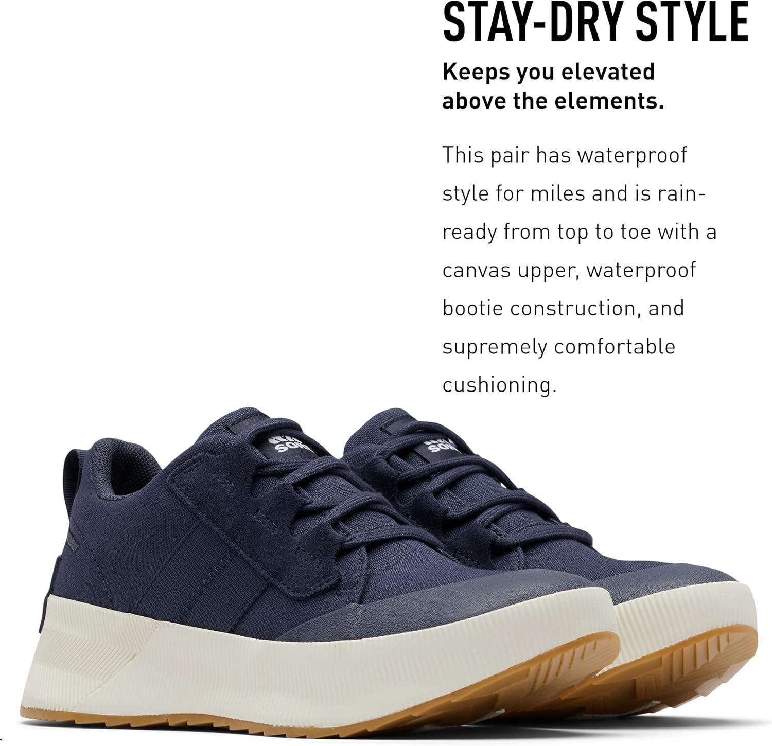 Stay stylish and dry with the SOREL Women's Out N About III Low Canvas Sneakers. These rain-ready sneakers are the perfect choice for all-weather walks and runs, making them great for long walks on rainy days. These sneakers feature a waterproof canvas upper with suede and webbing overlays as well as a waterproof Bootie construction. The vulcanized toe cap and the rubber sole provide a stable grip on any surface. Made of a premium vulcanized rubber and webbing overlays, these sneakers are typically better against abrasion. Additionally, the vulcanized midsole enhances the shoe's durability and longevity, making them a great investment for any shoe lover. The removable molded EVA footbed and textile top cover provides supreme comfort, and the laces allow for an adjustable fit. So if you want a sneaker that lives up to its name, the Out N About III Low Sneaker Canvas Waterproof is a perfect choice.