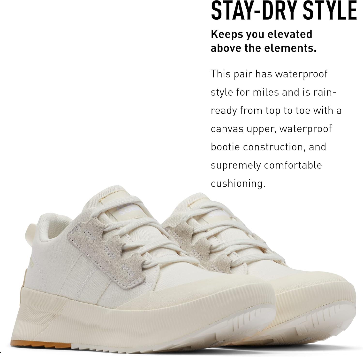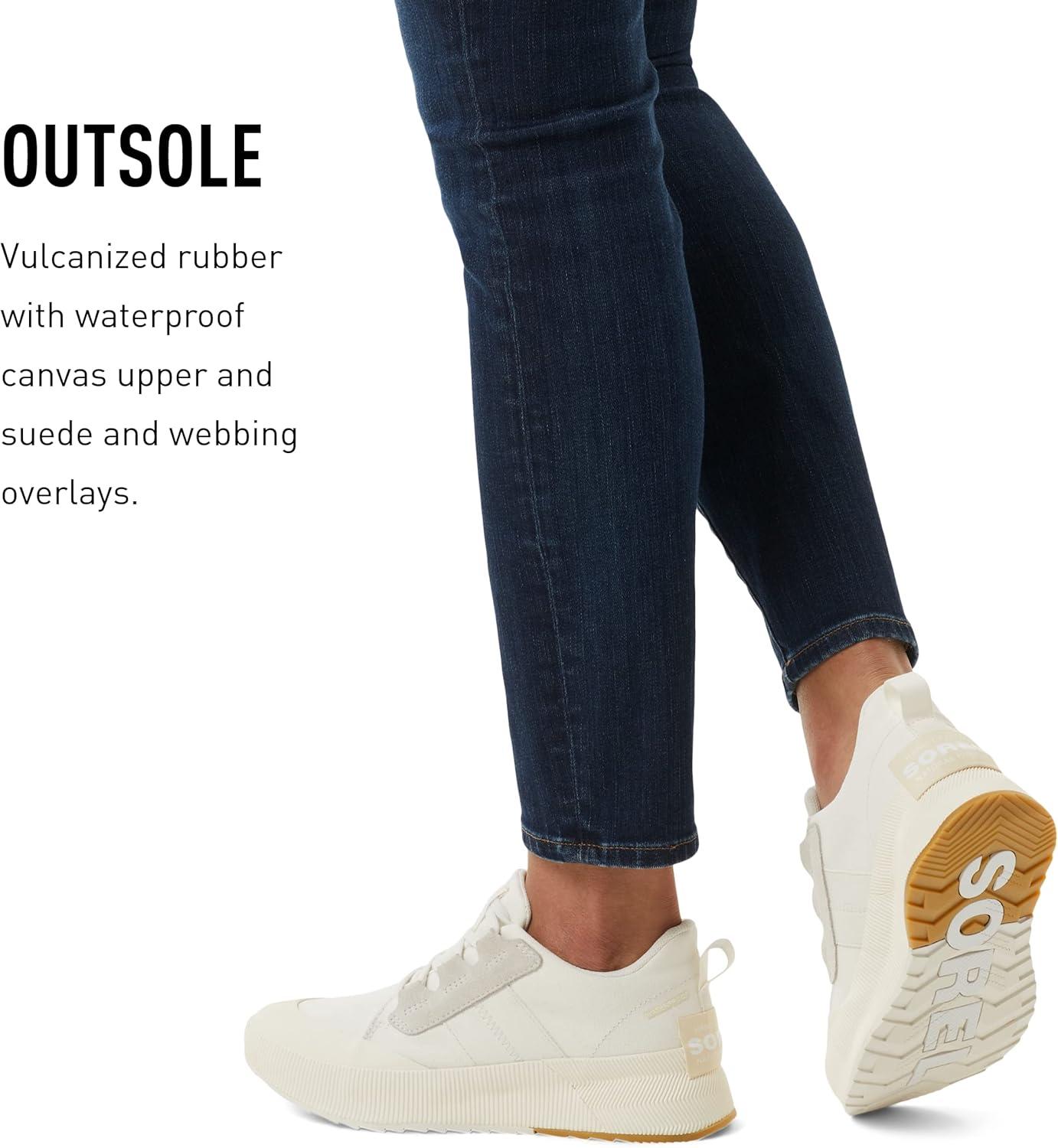 Stay stylish and dry with the SOREL Women's Out N About III Low Canvas Sneakers. These rain-ready sneakers are the perfect choice for all-weather walks and runs, making them great for long walks on rainy days. These sneakers feature a waterproof canvas upper with suede and webbing overlays as well as a waterproof Bootie construction. The vulcanized toe cap and the rubber sole provide a stable grip on any surface. Made of a premium vulcanized rubber and webbing overlays, these sneakers are typically better against abrasion. Additionally, the vulcanized midsole enhances the shoe's durability and longevity, making them a great investment for any shoe lover. The removable molded EVA footbed and textile top cover provides supreme comfort, and the laces allow for an adjustable fit. So if you want a sneaker that lives up to its name, the Out N About III Low Sneaker Canvas Waterproof is a perfect choice.