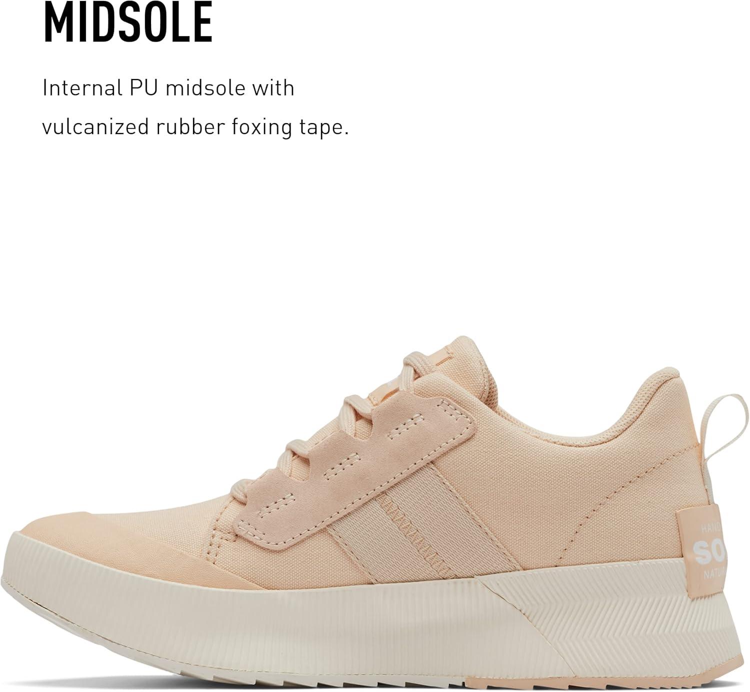 Sorel Women’s Out N About III Low Sneaker Canvas Shoes(White Peach Chalk)