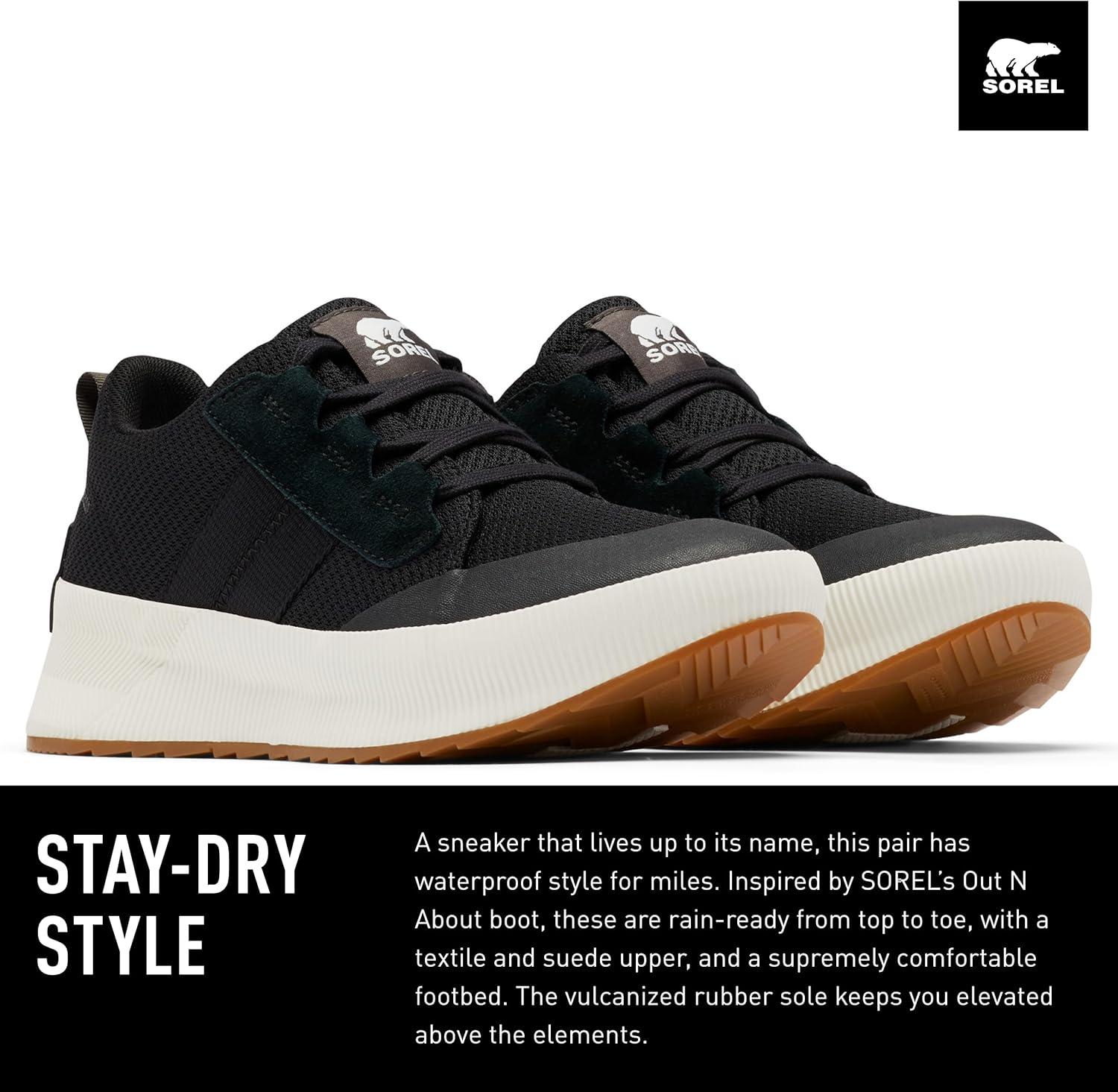 Sorel Womens Out N About III Low Sneaker Waterproof(Black Sea Salt)