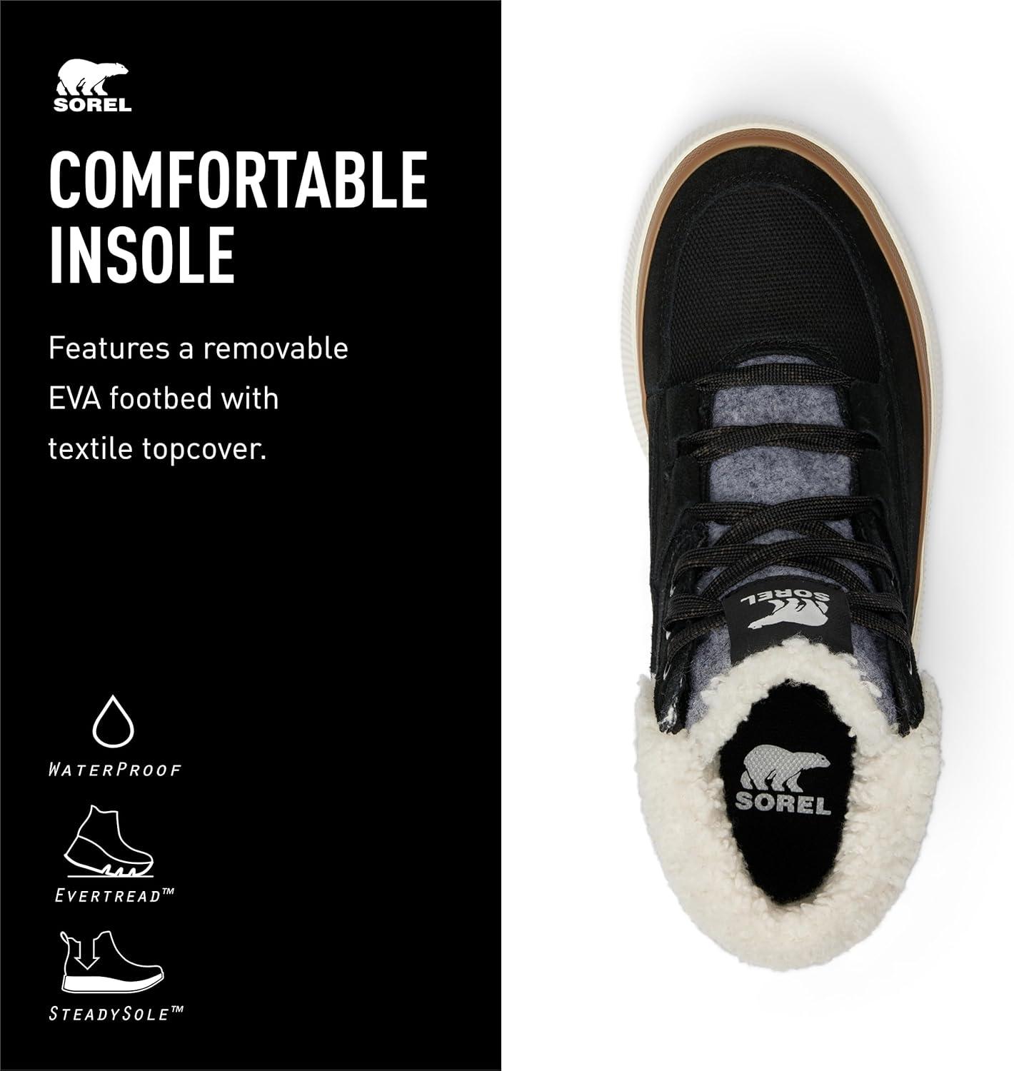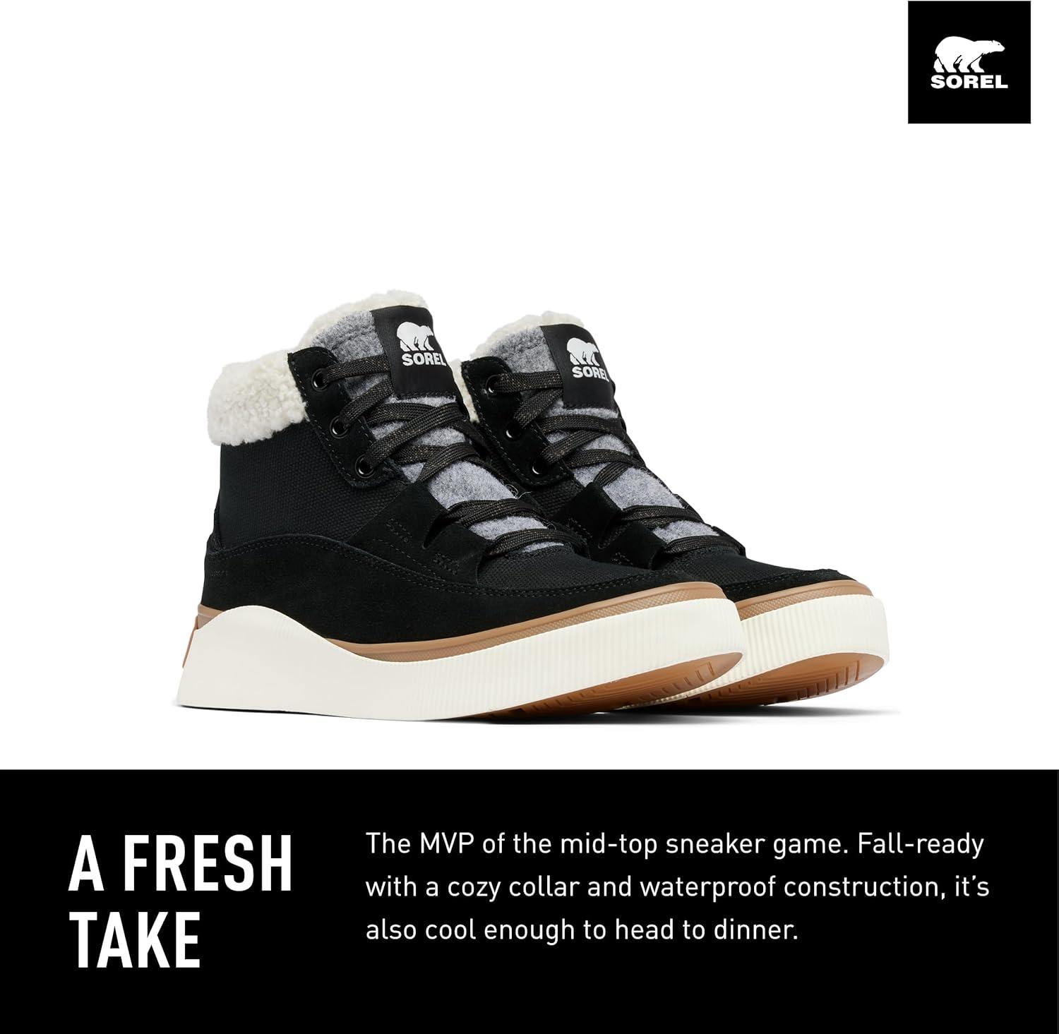 SOREL Women’s Out N About lV Mid Waterproof Sneaker(Black/Sea Salt)