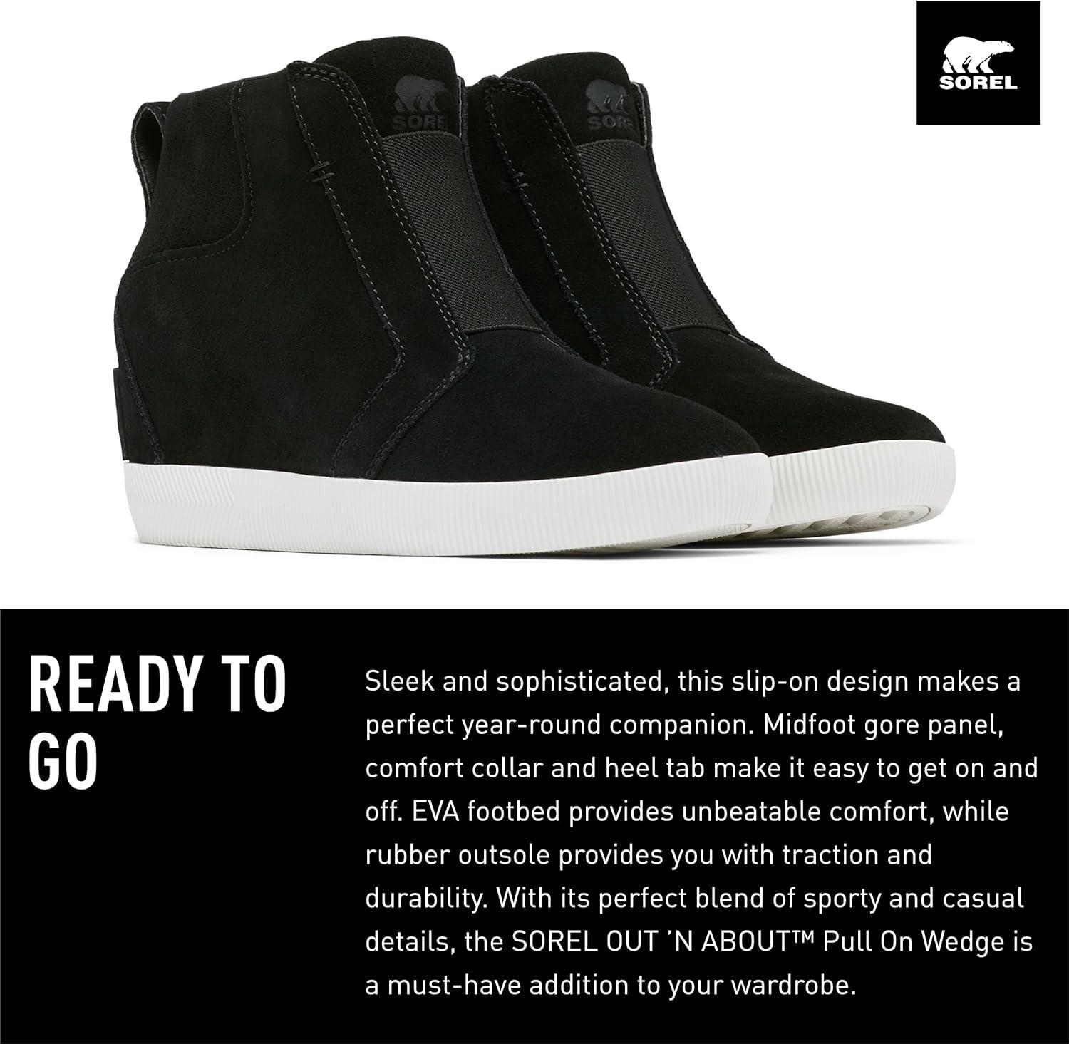 SOREL Women’s Out N About Pull On Wedge Boot(Black Sea Salt)