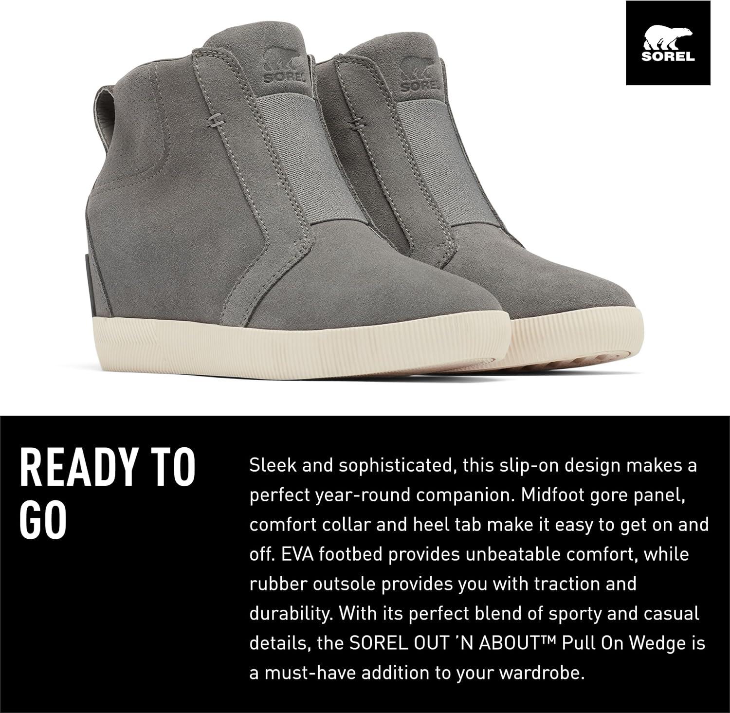 SOREL Women’s Out N About Pull On Wedge Boot(Quarry Sea Salt)
