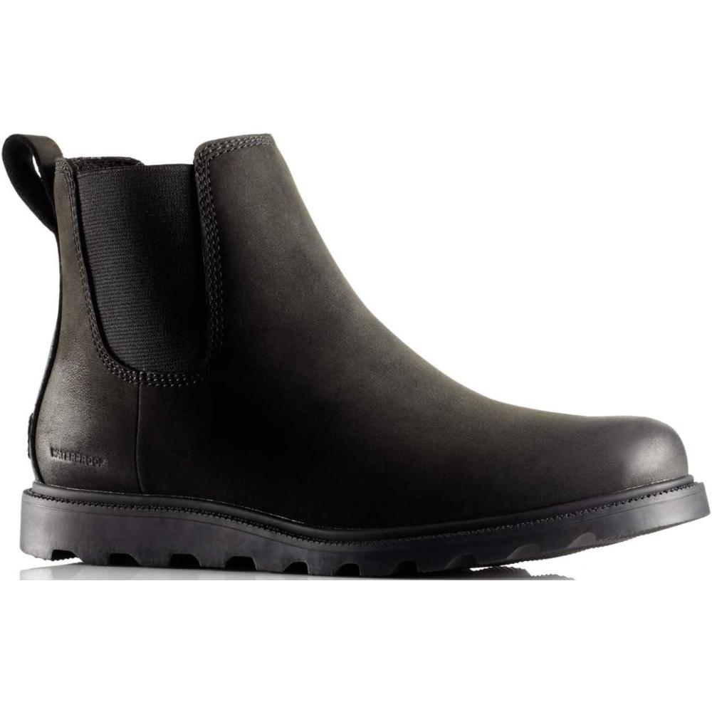 Sorel Ainsley Chelsea feature rich smooth leather uppers, smooth leather lining, contrasting leather outsole unit, contrasting stitching accents, twin elastic side panels, closed round toe front, easy pull on design and a single pull tab on the back.