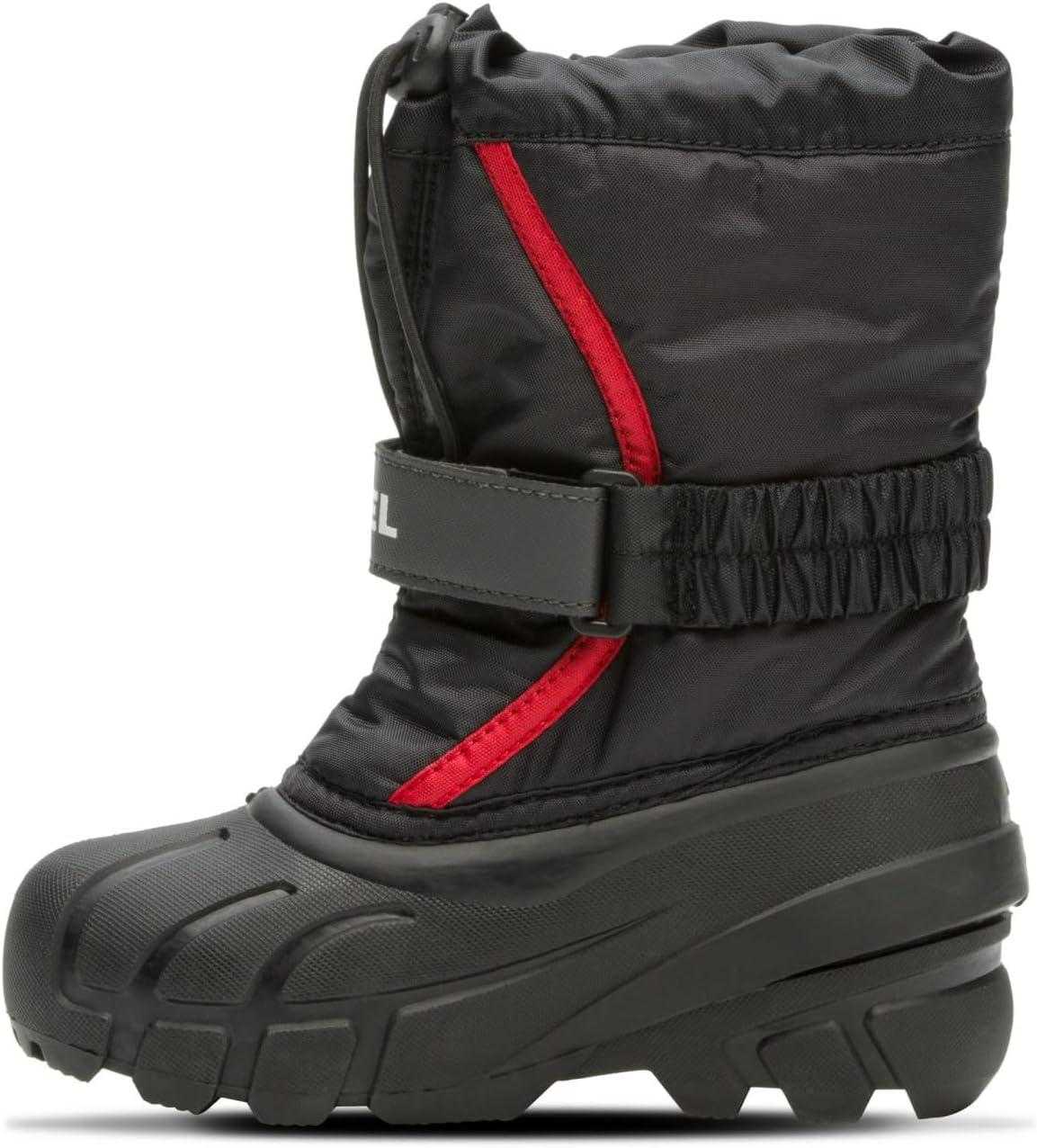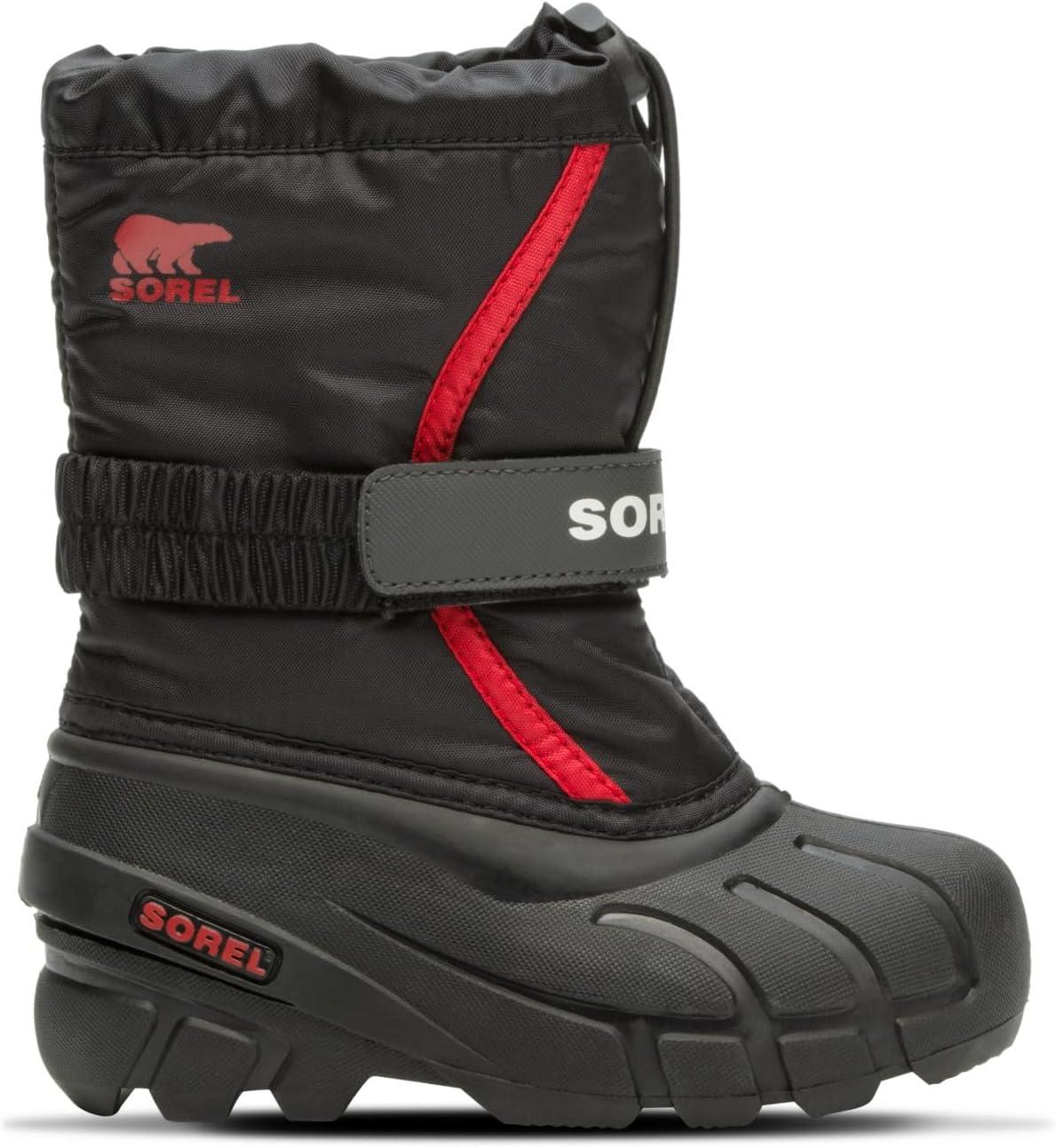 SOREL – Youth Flurry Winter Snow Boots for Kids(Black Black Bright Red)