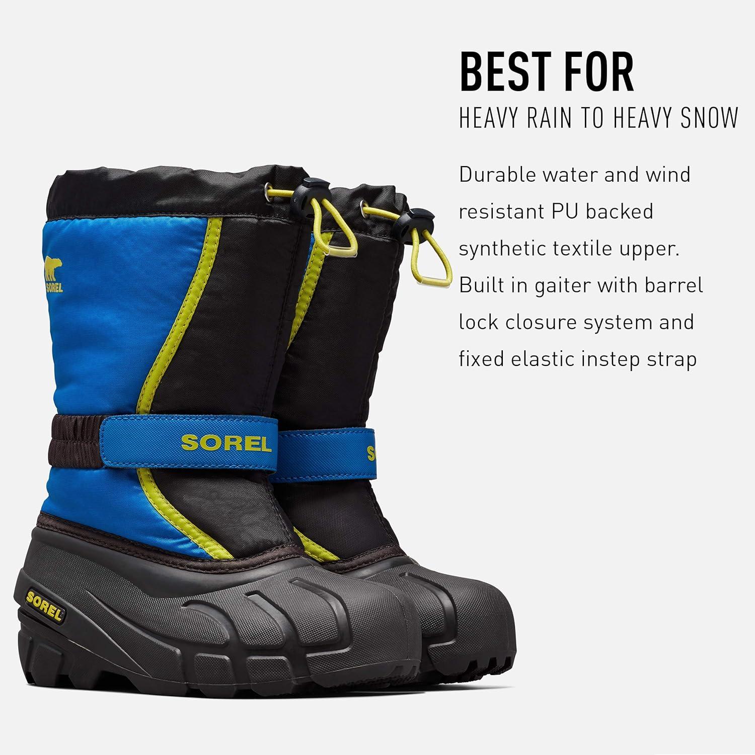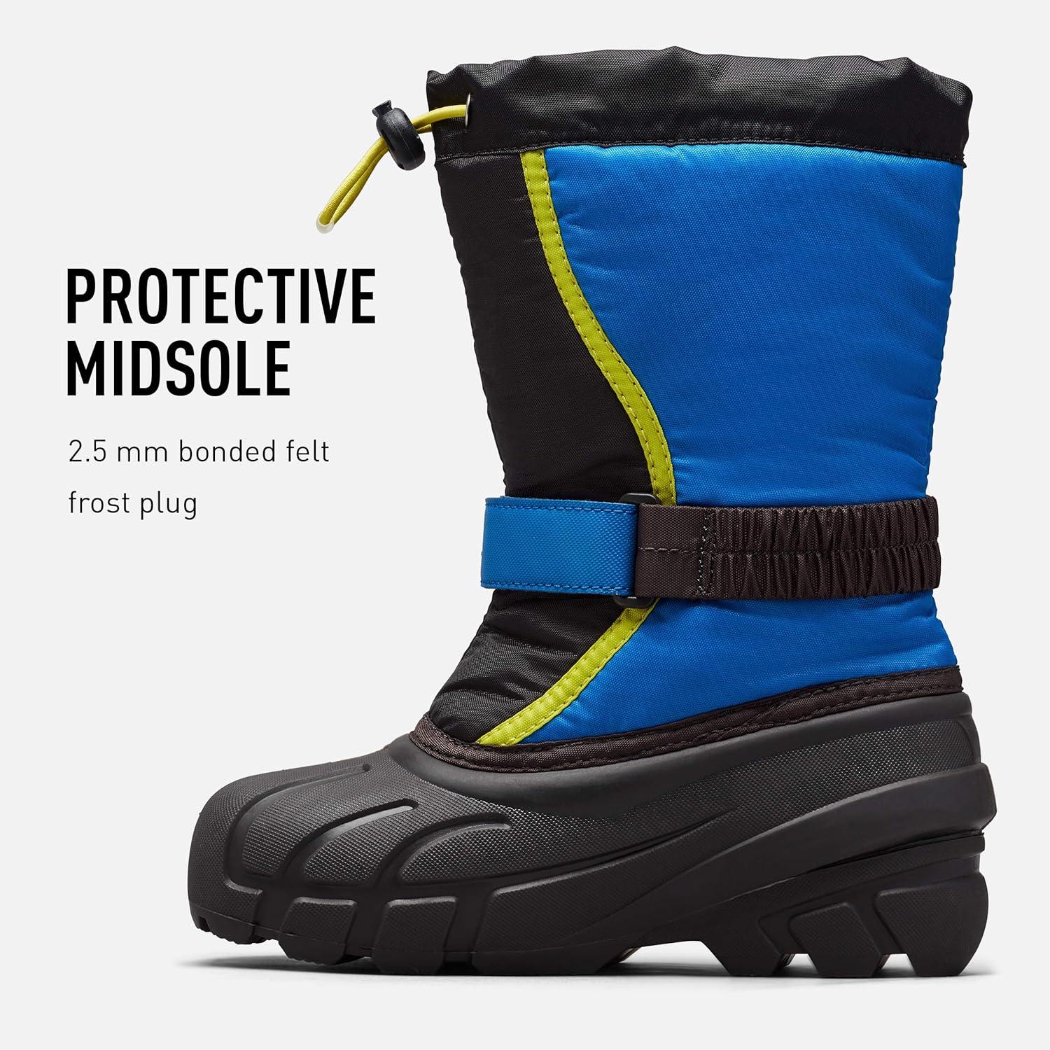 SOREL – Youth Flurry Winter Snow Boots for Kids(Black Black Super Blue)