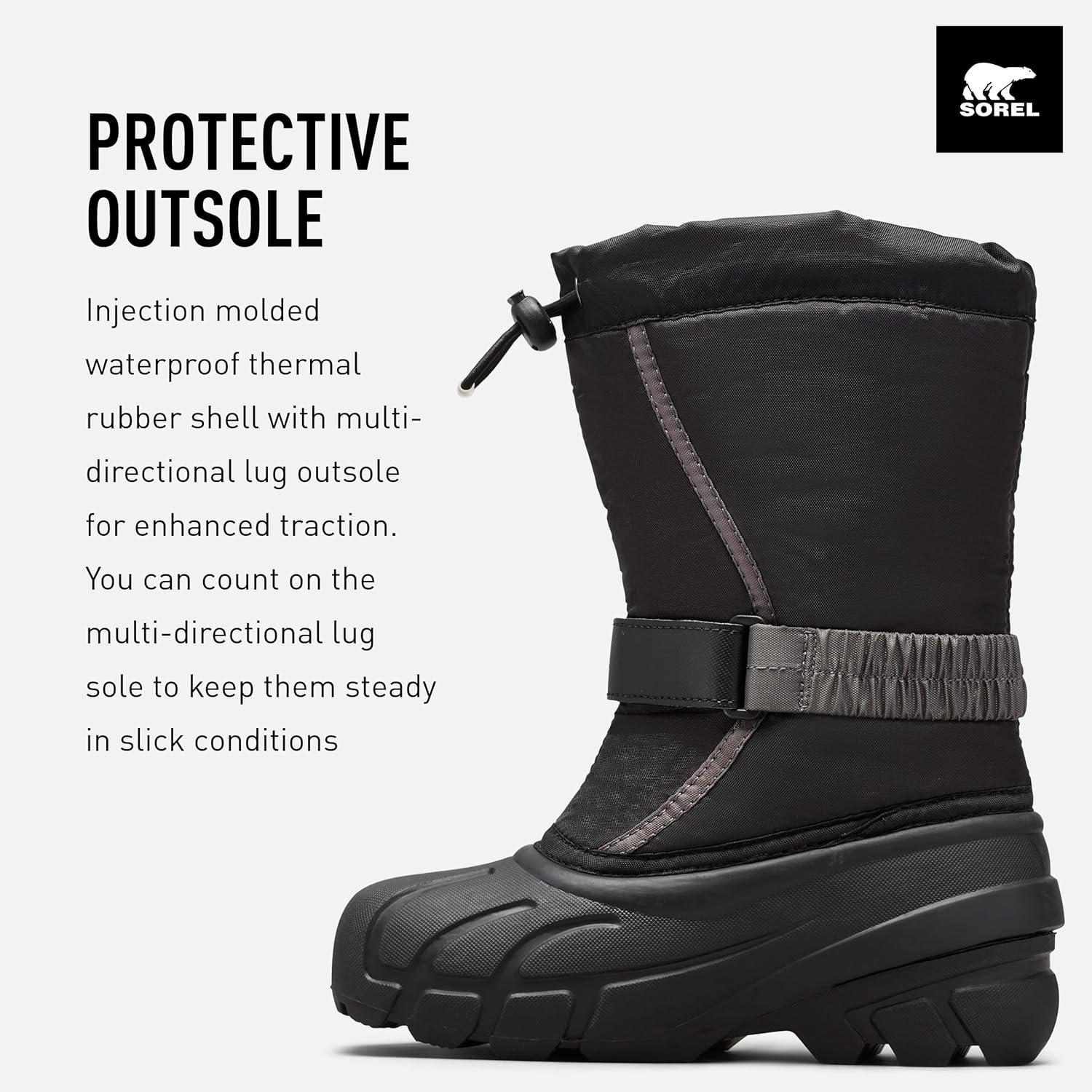 SOREL – Youth Flurry Winter Snow Boots for Kids(Black City Grey Youth Collection 2023)