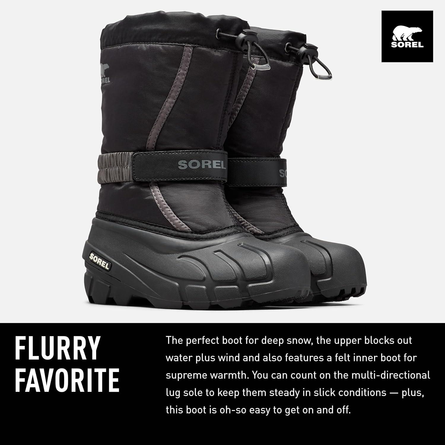 SOREL – Youth Flurry Winter Snow Boots for Kids(Black X City Grey Youth)