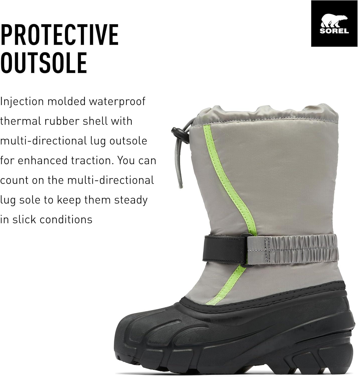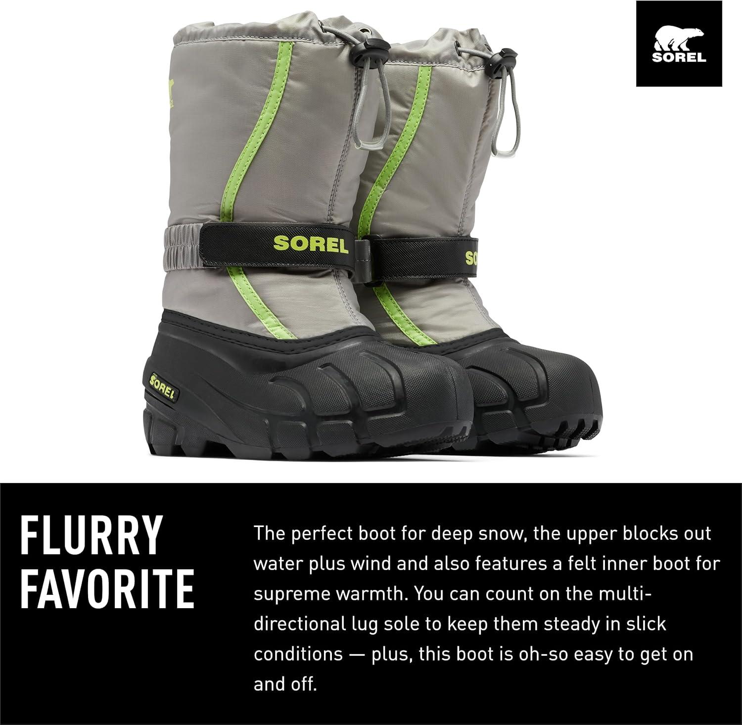 SOREL – Youth Flurry Winter Snow Boots for Kids(Grey Chrome Grey X Black Youth)