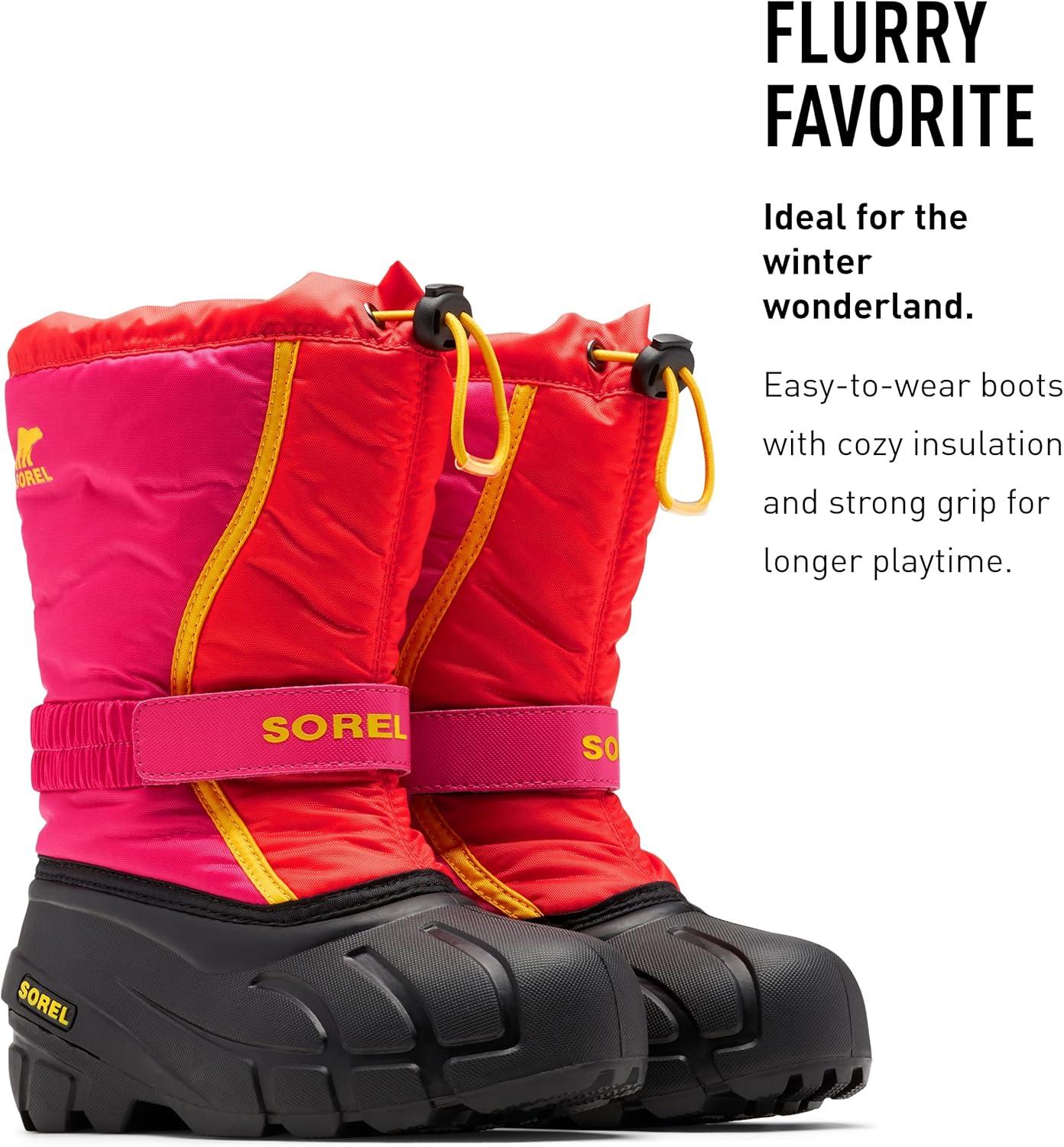 SOREL – Youth Flurry Winter Snow Boots for Kids(Poppy Red Cactus Pink)