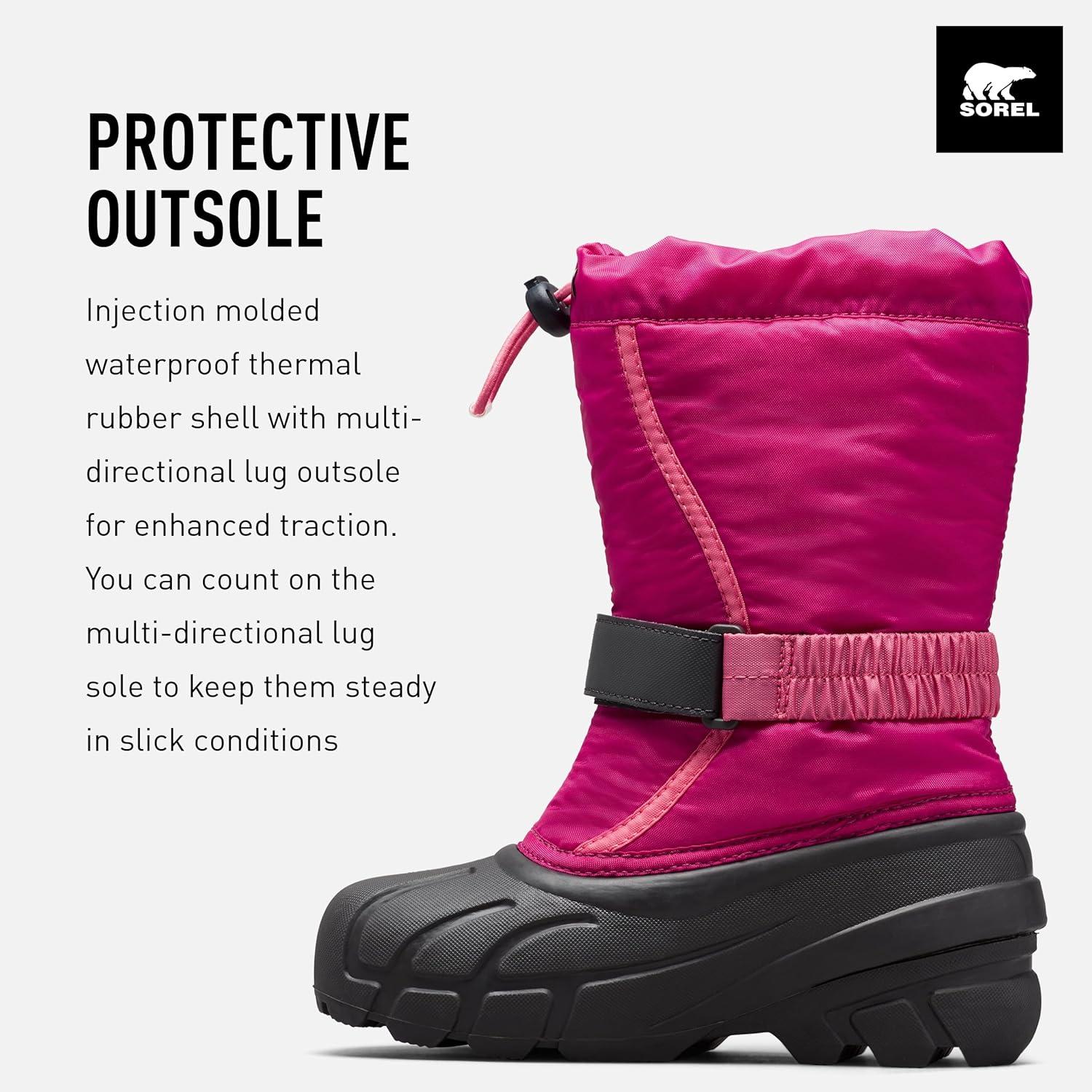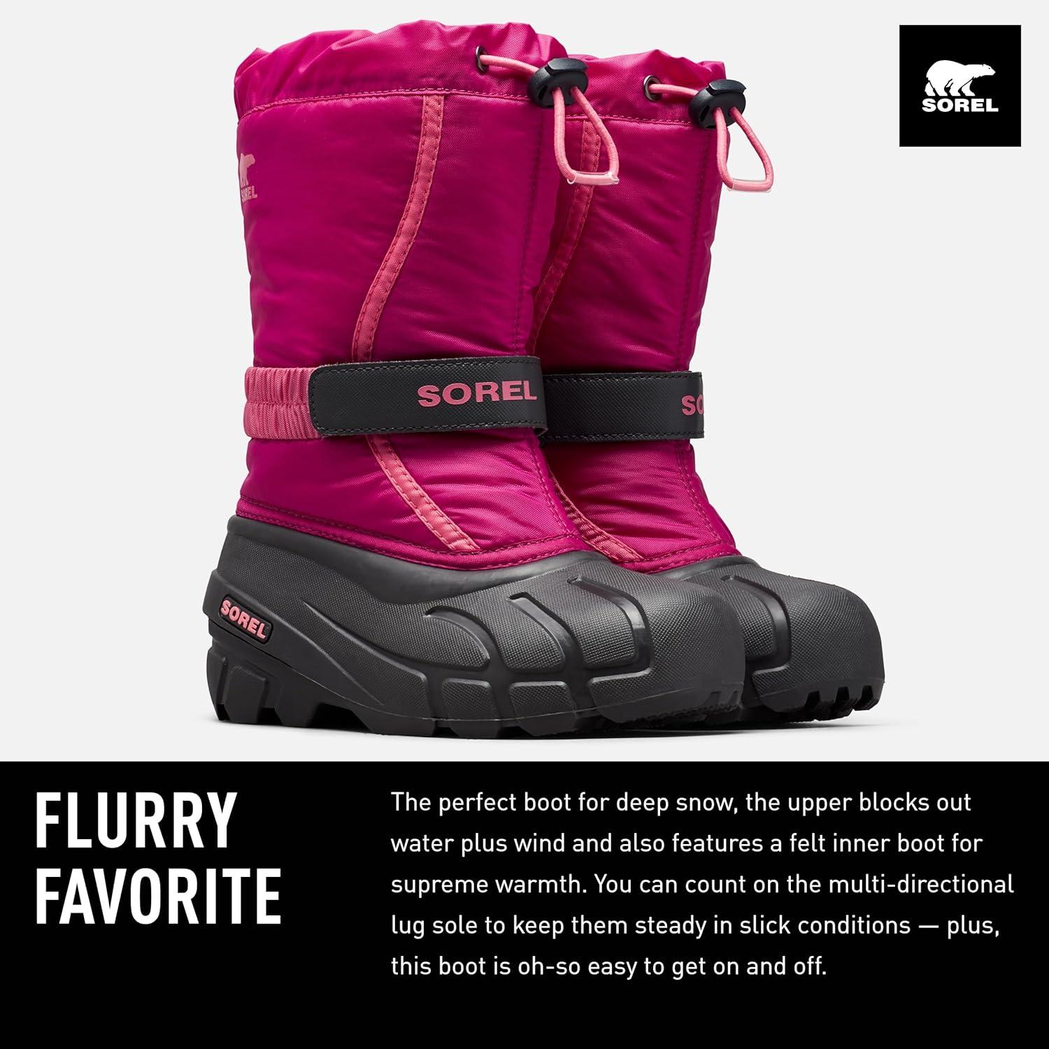 SOREL – Youth Flurry Winter Snow Boots for Kids(Red Deep Blush X Tropic Pink Youth)